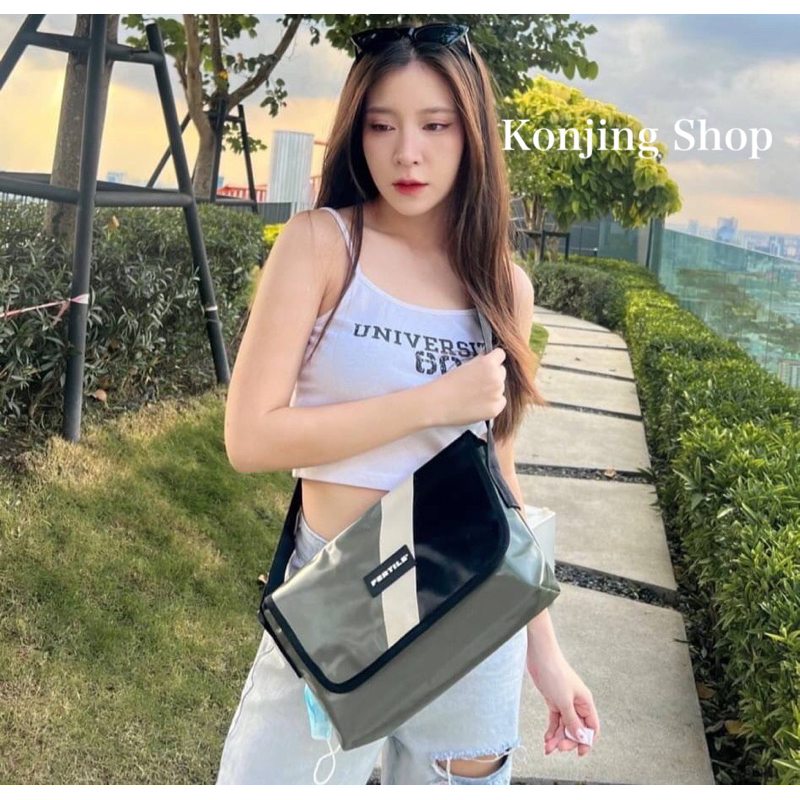 กระเป๋าผ้าใบ แบรนด์เฟอไทล กระเป๋าสะพายข้าง หลากสี ขนาด:กว้าง4" ยาว12" สูง7"กระเป๋าผลิตจากผ้าใบชนิดพิเศษ2ชั้น สายไนล่อน