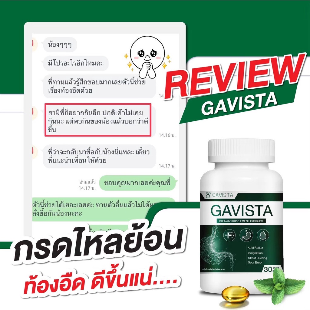 โปรพิเศษ! [1 แถม 1] Gavista กาวิสต้า ดูแลกระเพาะ ไม่แน่น ท้องอืด ย่อยง่ายขึ้น