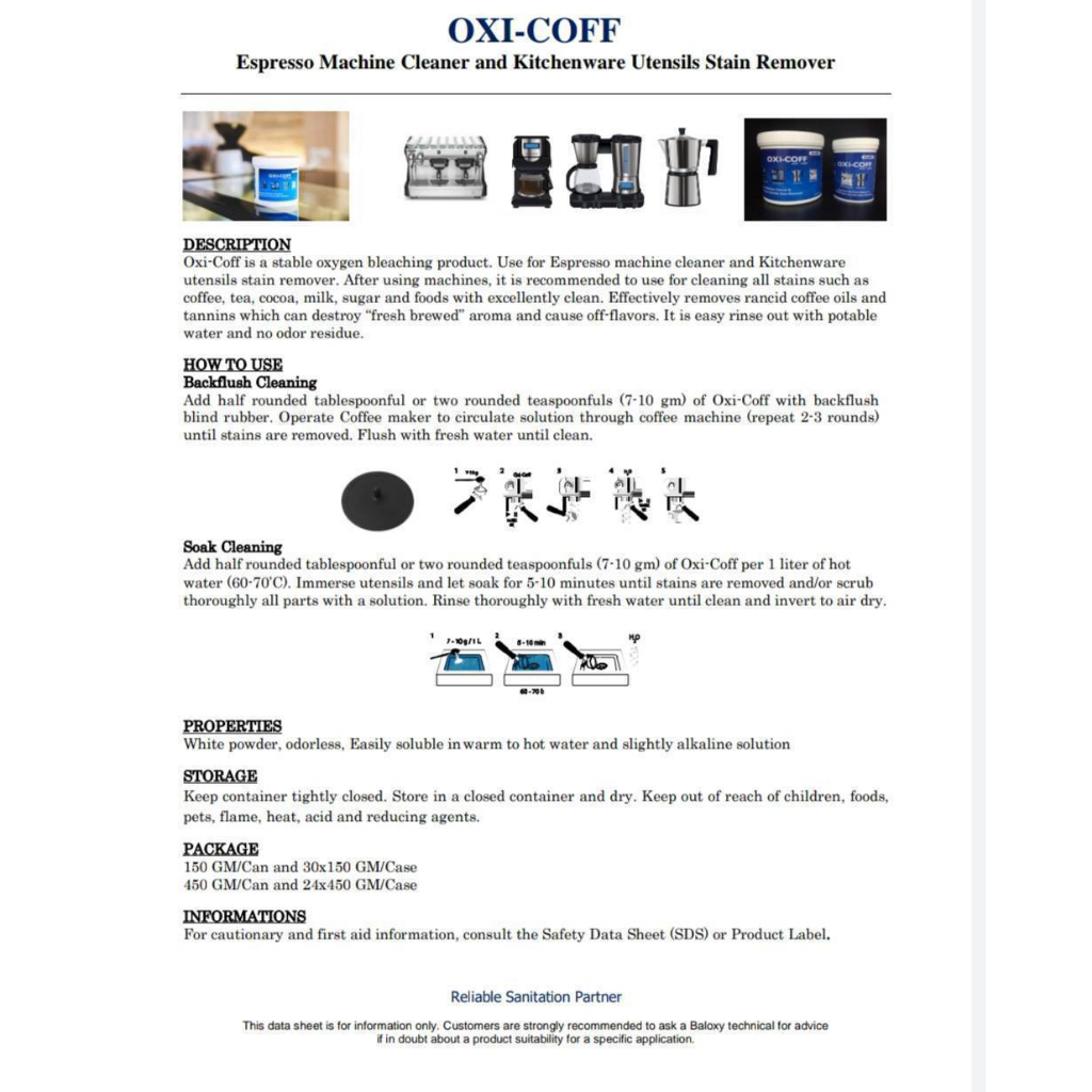 ผงล้างเครื่องชงกาแฟ OXI-COFF 150 กรัม เครื่องชงกาแฟ อุปกรณ์ชงกาแฟ แช่ด้ามชงกาแฟ หม้อต้มกาแฟ Moka pot