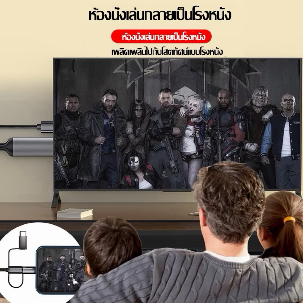 สายต่อโทรศัพท์เข้าทีวี 3in1 สายเคเบิ้ลเหมาะสำหรับ ios/android/type-C แชร์หน้าจอมือถือบนทีวี คอมพิวเตอร์ โปรเจคเตอร์