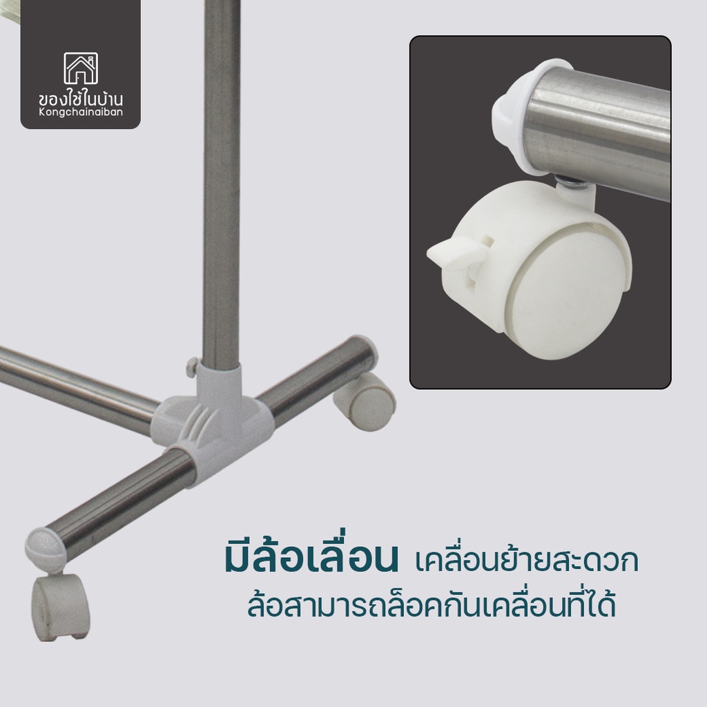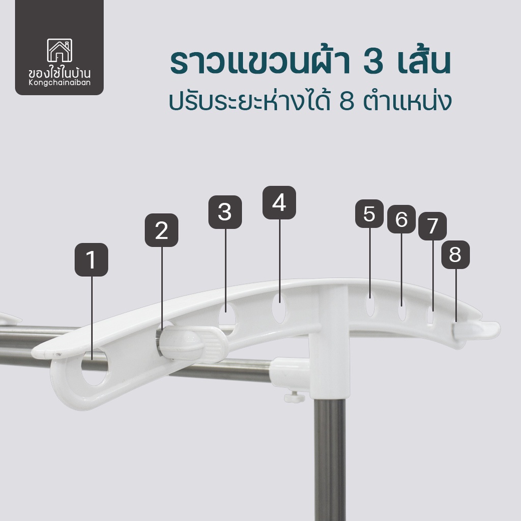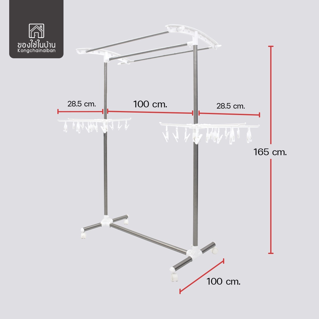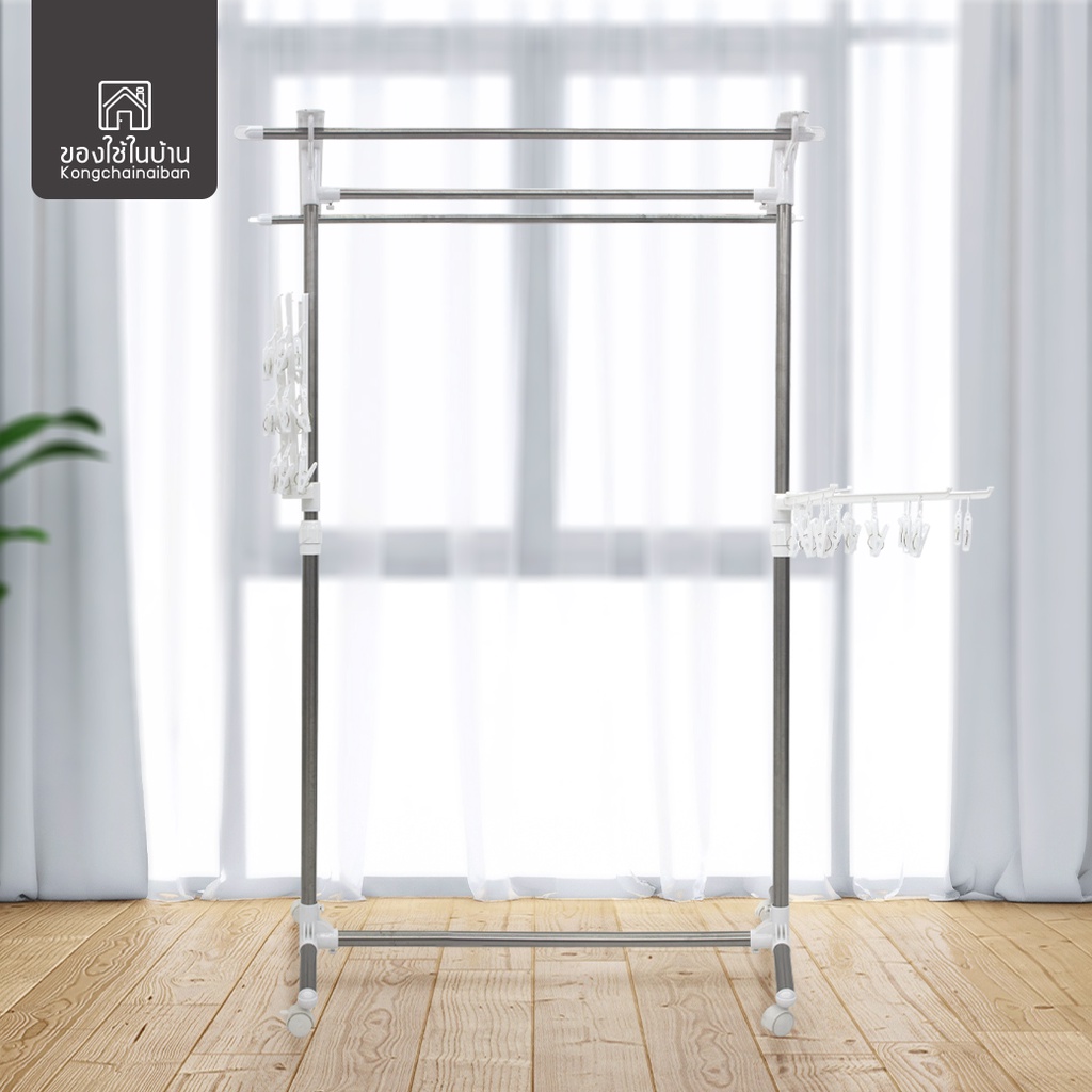 KANTAREEYA ราวแขวนผ้าสแตนเลส 3 เส้นพร้อมชุดที่หนีบผ้า 56x100-157x165 cm. รุ่น KT-EP51