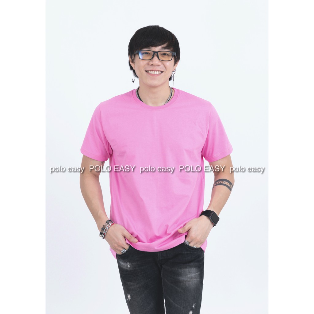 เสื้อยืดแฟชั่น ผู้ชาย T-Shirt Cotton 100% คอกลม แขนสั้น สีชมพูอ่อน