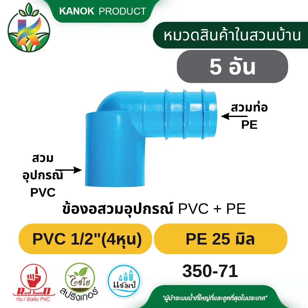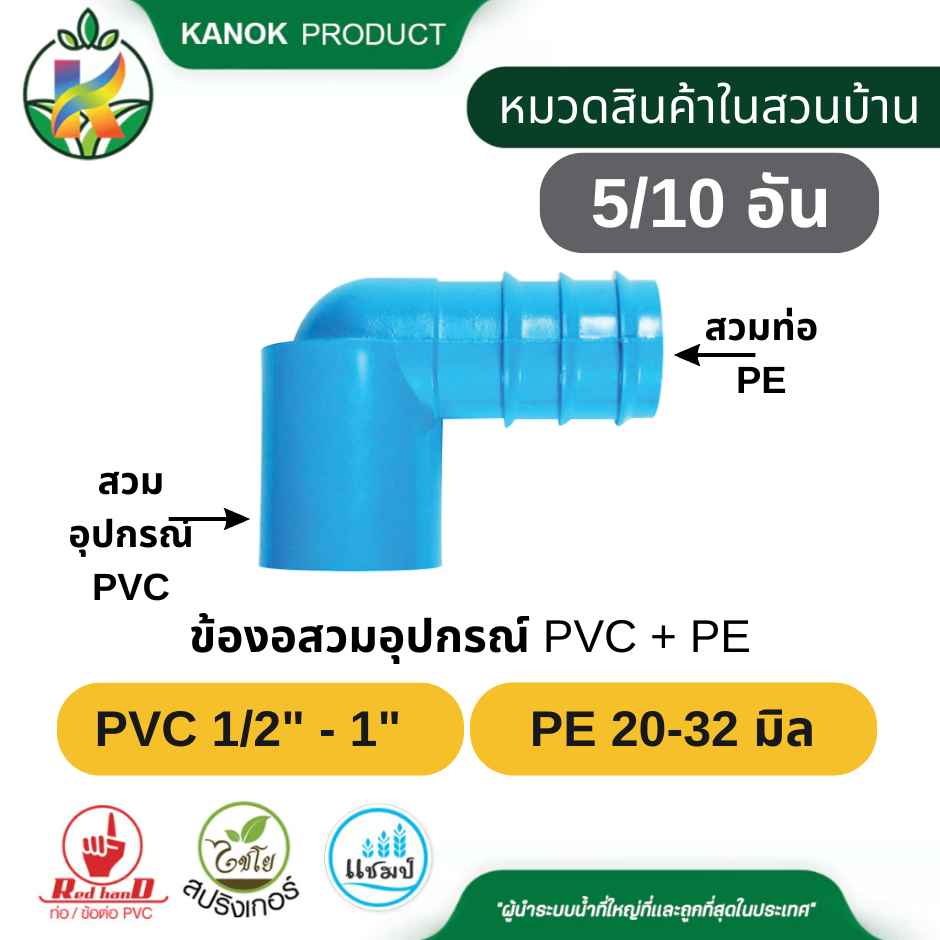 ข้องอสวมอุปกรณ์ PVC + PE (5/10อัน) สวมอุปกรณ์ PVC ขนาด 1/2"-1" กับ ท่อ PE 20-32 มิล ตรามือ 350-70