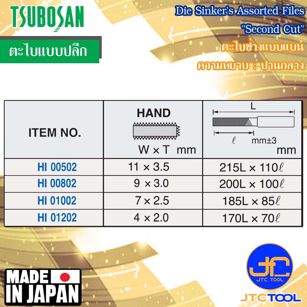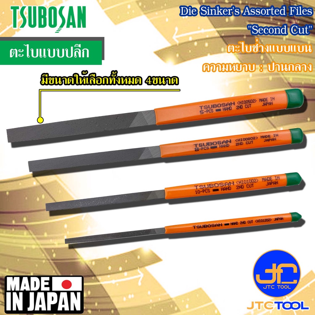 Tsubosan ตะไบช่างแบบแบนความหยาบปานกลาง รุ่น HI - Die Sinker's Hand Type Second Cut Series HI