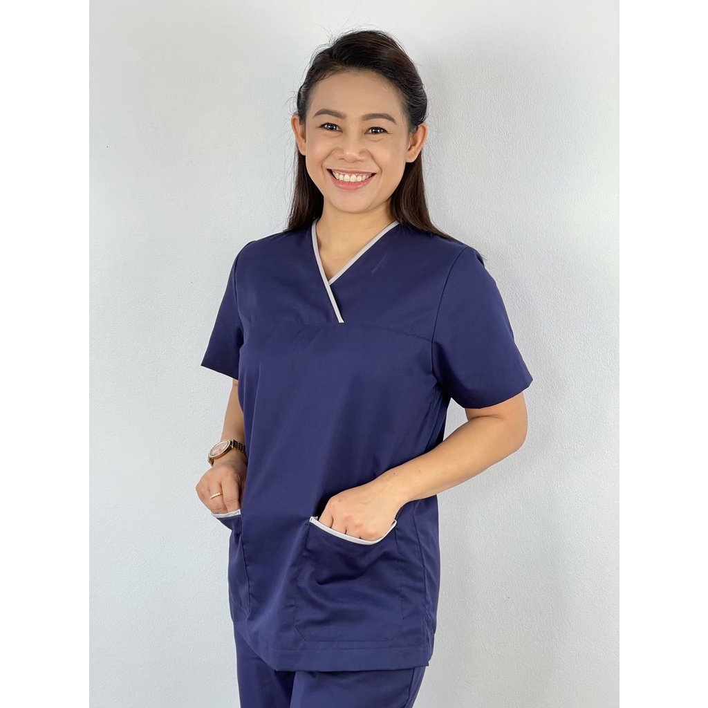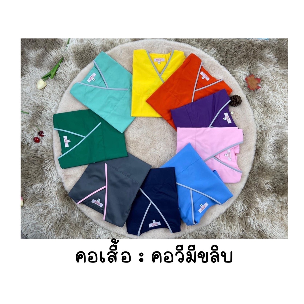 *(เฉพาะเสื้อ)ปักชื่อฟรี เสื้อสครับ คุณหมอ พยาบาล ชุดยูนิฟอร์มการแพทย์ (คอวีมีขลิบ) XL / 2XL / 3XL