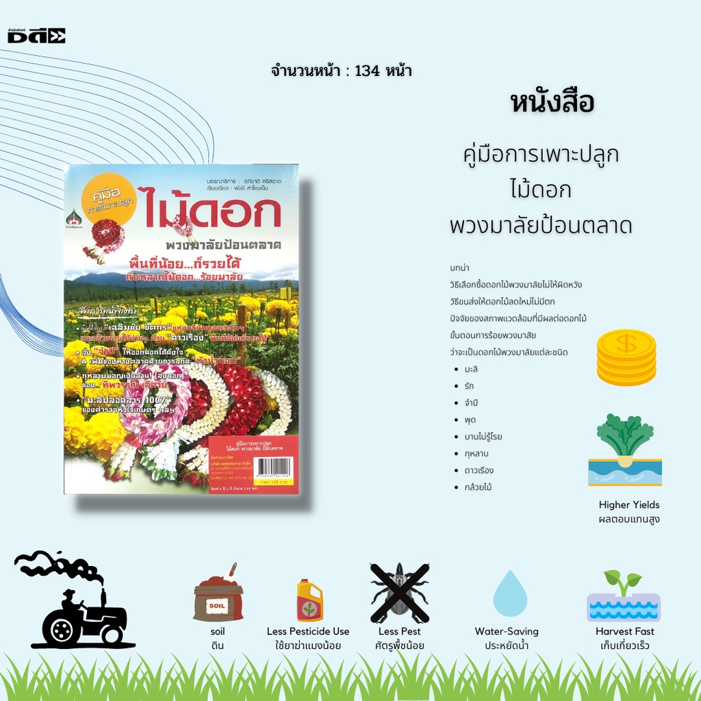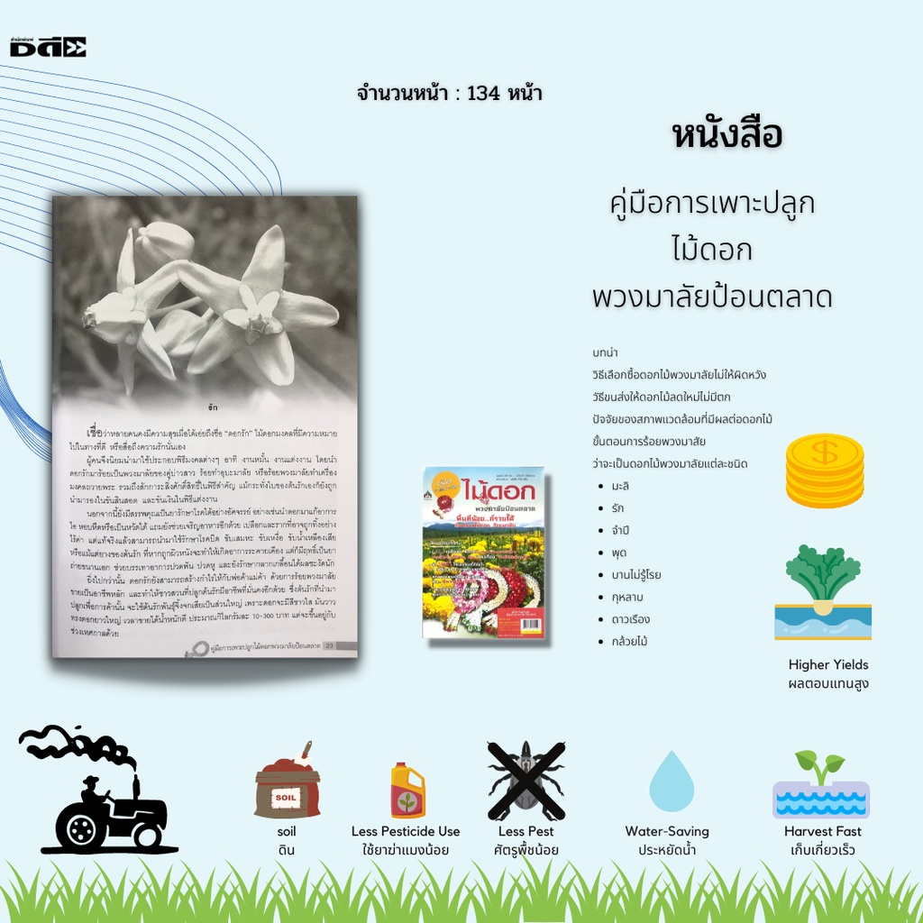 หนังสือ คู่มือการเพาะปลูกไม้ดอกพวงมาลัยป้อนตลาด : ดอกมะลิ ดอกรัก ดอกจำปี ดอกพุด ดอกบานไม่รู้โรย กุหลาบ ดาวเรือง กล้วยไม้