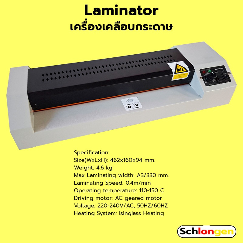 SCHLONGEN Laminator เครื่องเคลือบกระดาษ เคลือบเอกสาร เคลือบรูปถ่าย A3, A4 #A3-ECO12