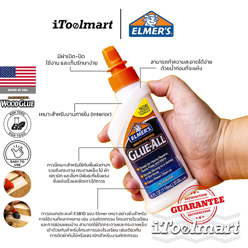 Elmer's กาวลาเท็กซ์ กาวติดไม้ มีขนาดให้เลือก 4oz - 16oz