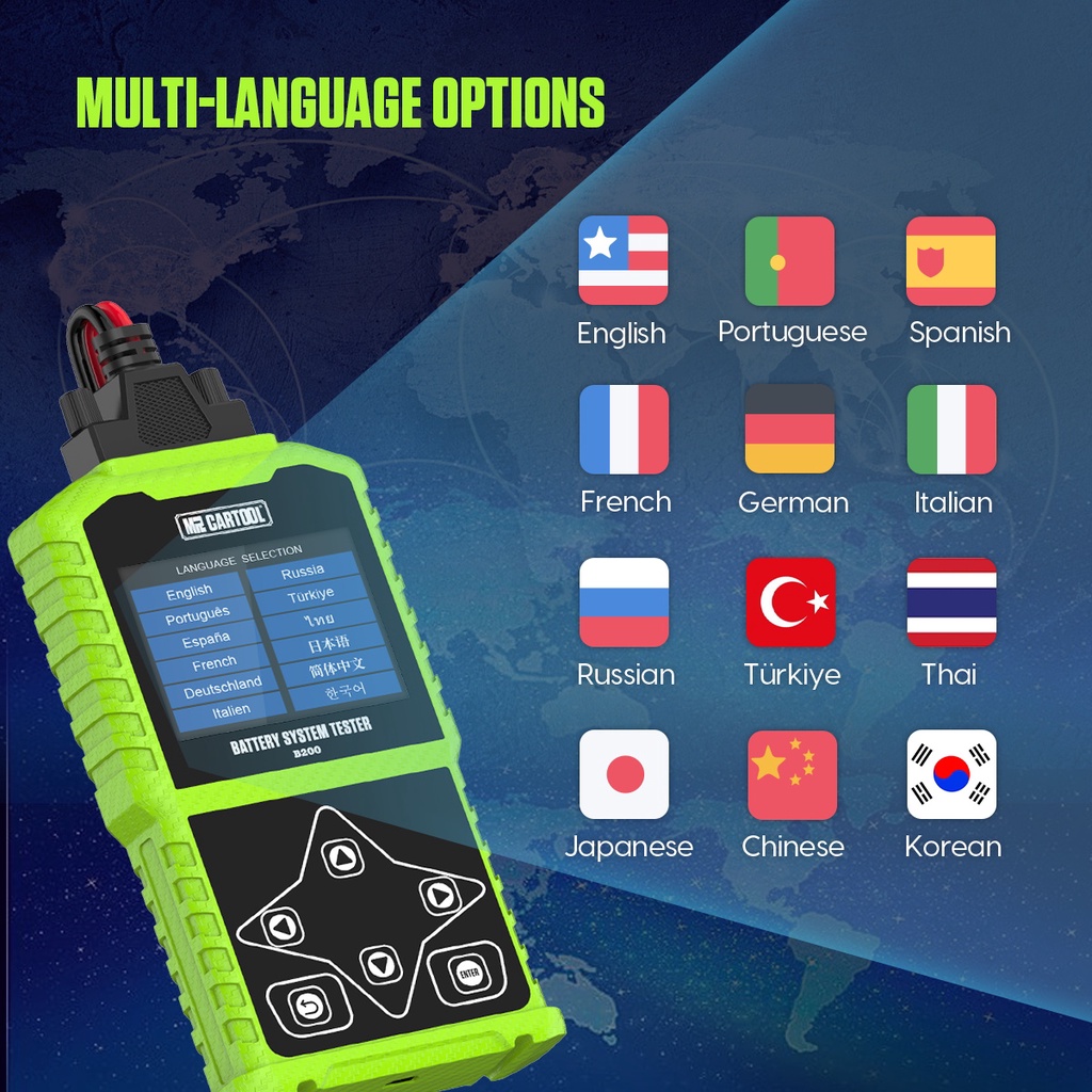 【ส่งไว】 เมนูภาษาไทย MRCARTOOL B200 เครื่องทดสอบแบตเตอรี่รถยนต์ 12 V/24 V Battery Tester ยานยนต์ Cranking Analyzer ชาร์จรถ Cricut โหลดเครื่องมือรถจักรยานยนต์รับประกัน 2 ปี เครื่องวัดแบตเตอรี่ PK AUTOOL BT460