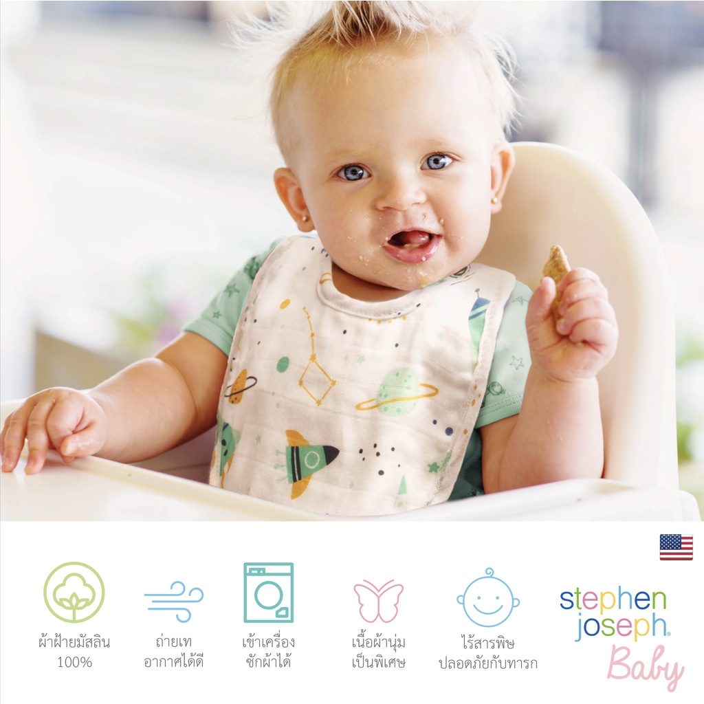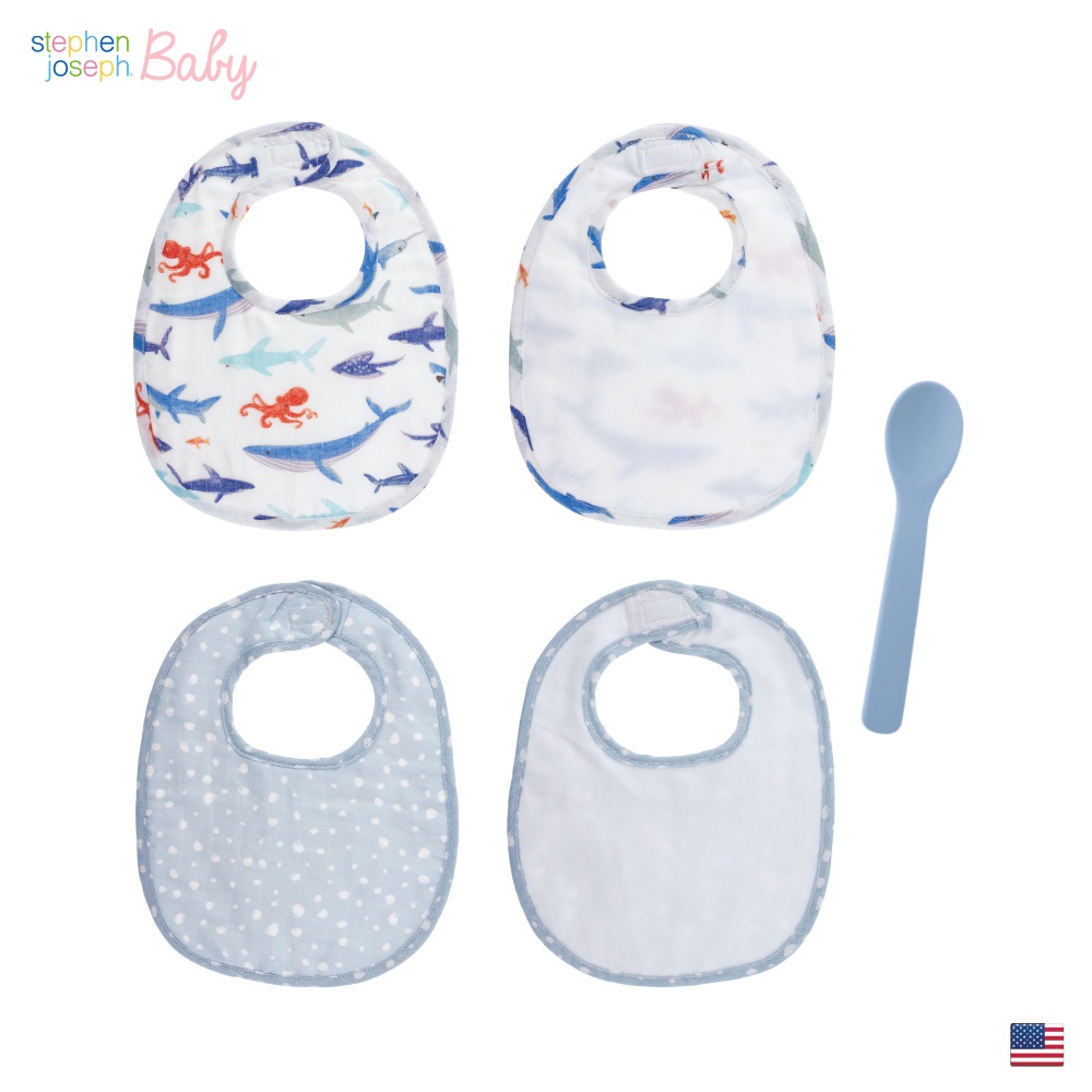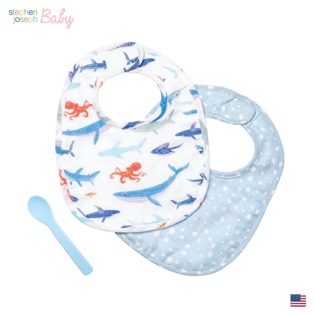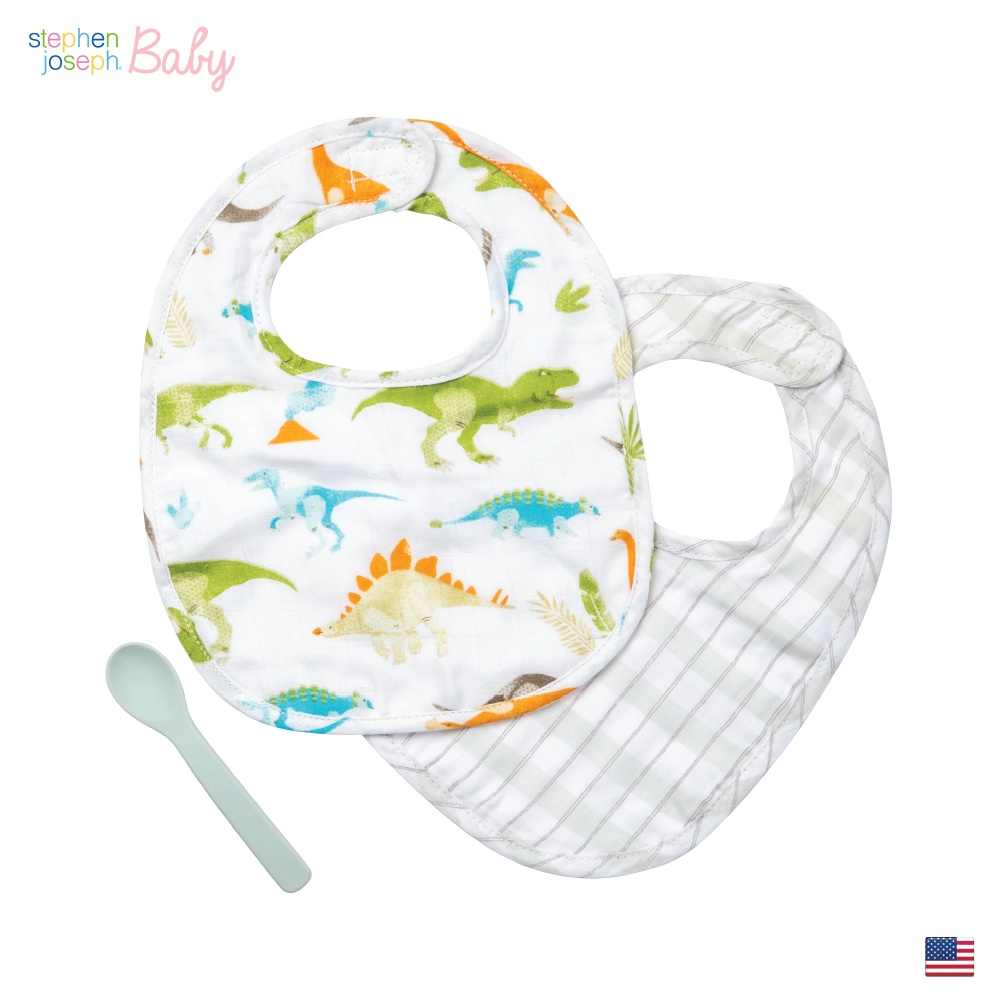 Stephen Joseph Baby ผ้ากันเปื้อนเด็ก 2 ชิ้น พร้อมช้อนซิลิโคนฟู้ดเกรด BPA Free แข็งแรง ทนความร้อนสูง