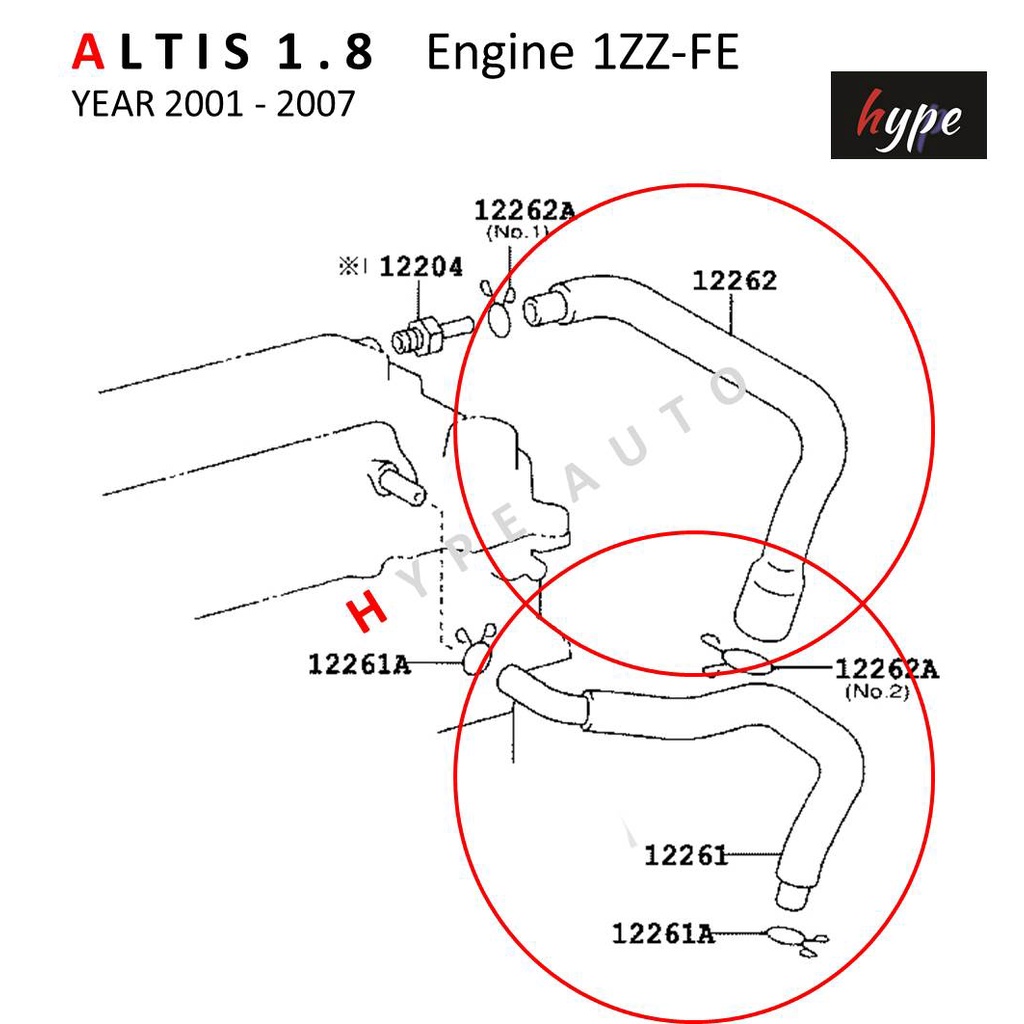 ท่อหายใจ ท่อระบาย บนฝาวาวล์ โตโยต้า อัลติส ALTIS 1.8 โฉม หน้าหมู ปี 2001 - 2007 ( 2 ท่อน)
