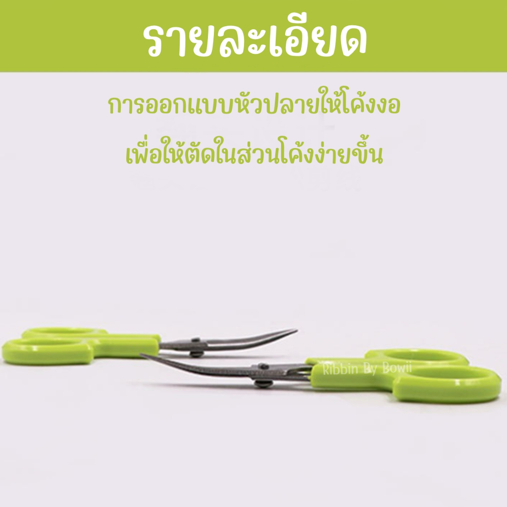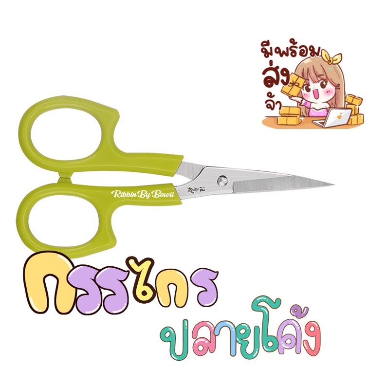 กรรไกรปลายโค้ง สีเขียว ขนาด 13 cm. ใช้สำหรับตัดริ้บบิ้นและงานประดิษฐ์ ชิ้นเล็ก (พร้อมส่ง)