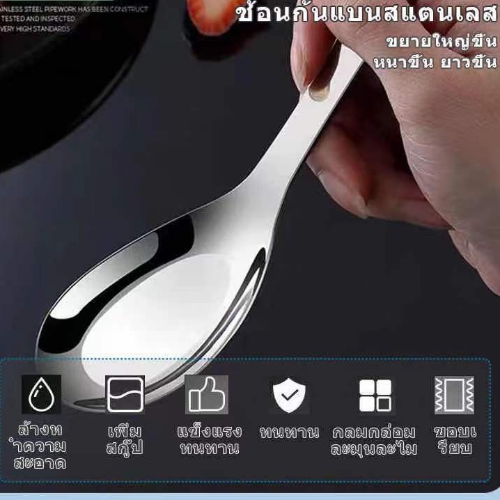 ช้อนซุปสแตนเลส ช้อนเกาหลี 304ช้อนกลาง ตักอาหาร เตรียมจัดส่ง(085)