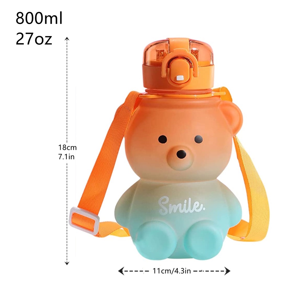 GEMFUL ขวดน้ําน่ารัก 800ml พร้อมหลอด & สายคล้อง Bear Kawaii ถ้วยดื่มแบบพกพา Leakproof 27oz