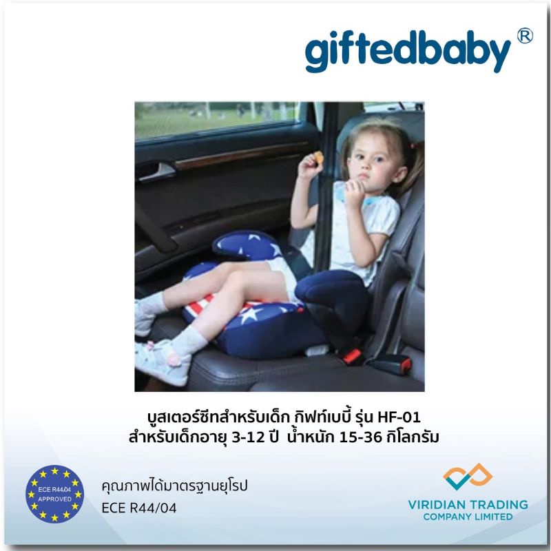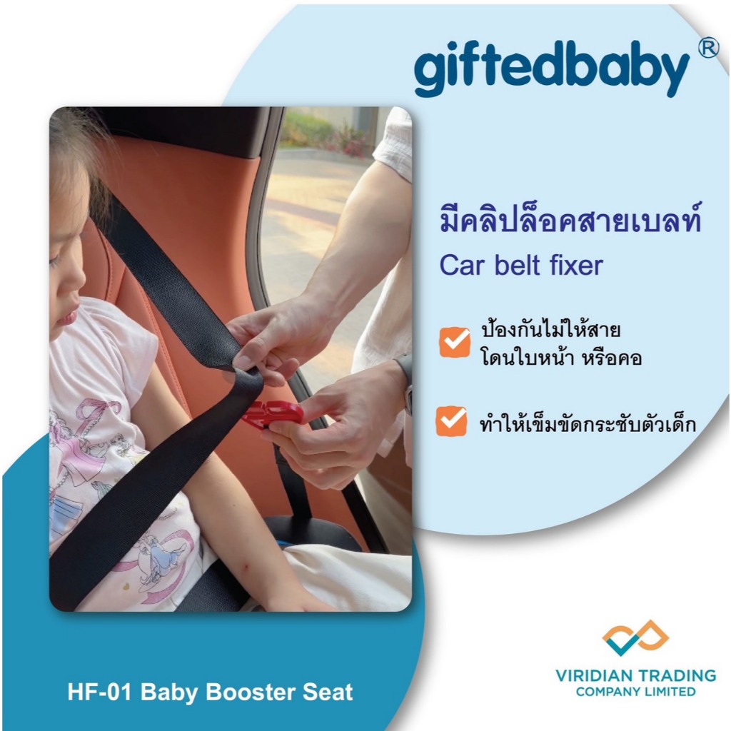 Booster seatเบาะนั่งเสริมในรถยนต์Giftedbaby มือ1 มีคลิปล็อคสายเบลท์เพิ่มเติม