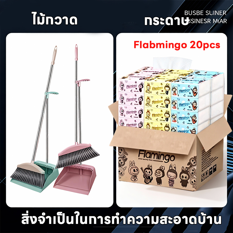 ชุดไม้กวาด ไม้กวาดพร้อมที่ตักผง ชุดไม้กวาดพร้อมที่ตักขยะ มี 3สี มีแปรงในตัวพร้อมที่ตักขยะ ส่งทิชชู่