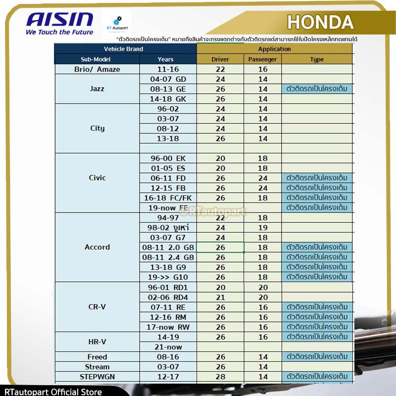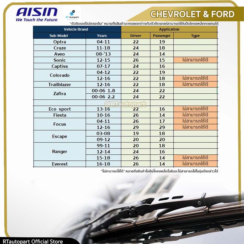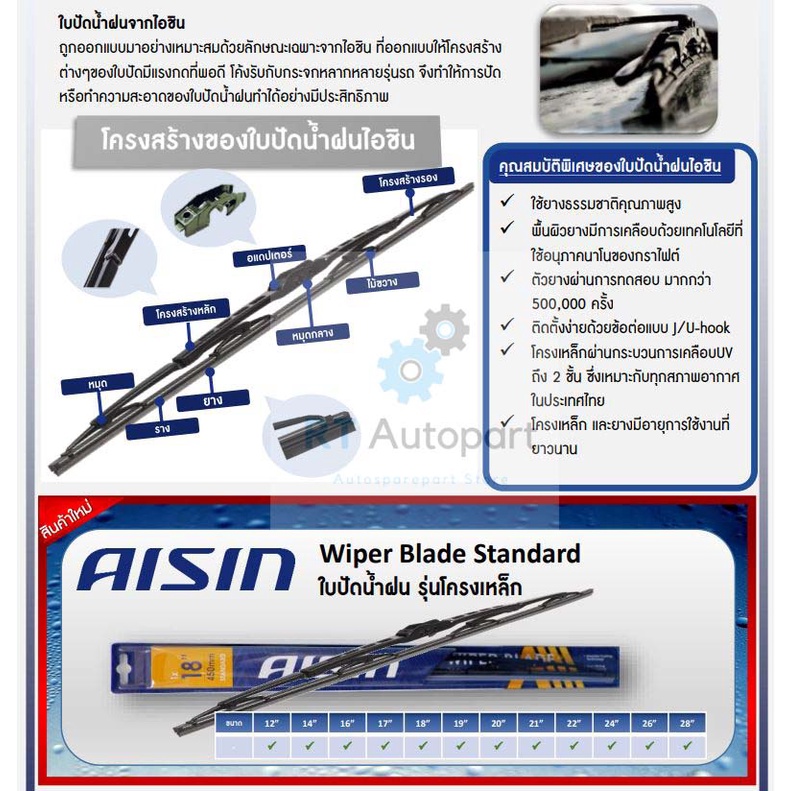 Aisin ใบปัดน้ำฝน โครงเหล็ก คุณภาพสูง ขนาด 14" - 26" / Aisin Wiper Blade / ก้านปัดน้ำฝน AWBSH