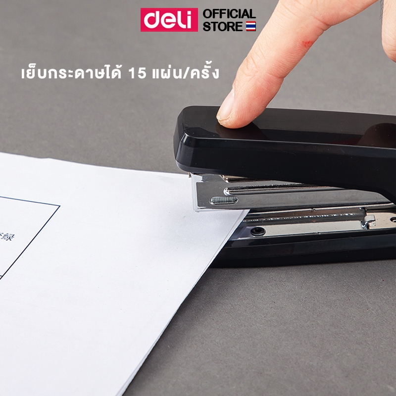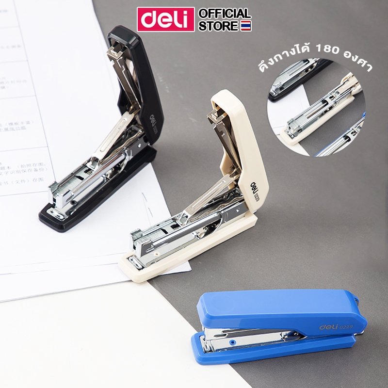 เครื่องเย็บกระดาษ Deli รุ่น E0229 ใช้ลวดเบอร์ 10 แข้งแรง ทนทาน (คละสี / จำหน่าย 1 ชิ้น)