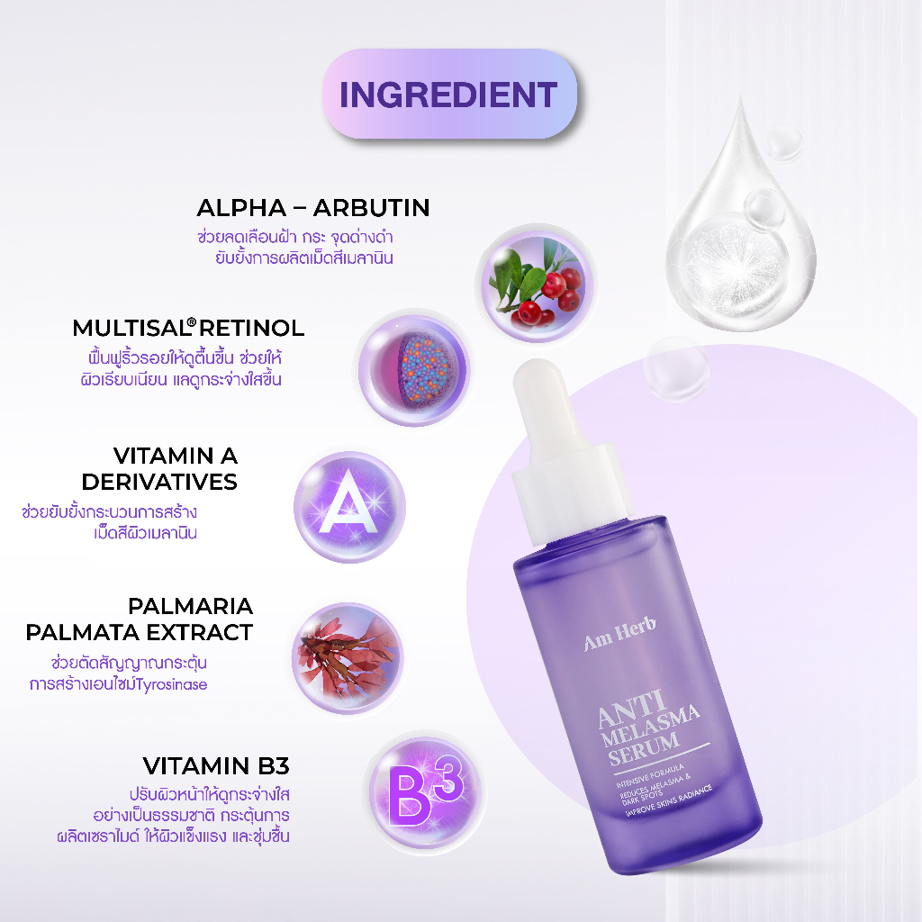 AM HERB ANTI-MELASMA SERUM 30 ml อัมเฮิร์บ แอนตี้ เมลาสม่า เซรั่ม เซรั่มปิดวงจรฝ้าใน 7 วัน ลดฝ้าตื้น ฝ้าแดด กระ และจุดดำ