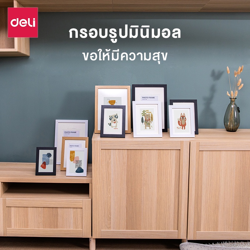 Deli กรอบรูป A4 4x6 5x7 6x8 นิ้ว 3 สี กรอบรูปไม้ กรอบรูปมินิมอล กรอบรูปราคาถูก หูแขวนผนัง ตกแต่ง Photo Frame