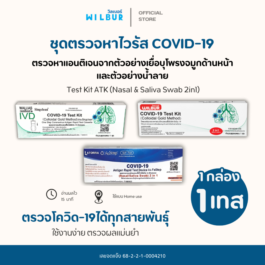 ชุดตรวจโควิด Covid-19 ATK Wilbur + singclean 2IN1 และ Latorria 1กล่องต่อ1เทส ตรวจโพรงจมูกและน้ำลาย (พร้อมส่งจากไทย)