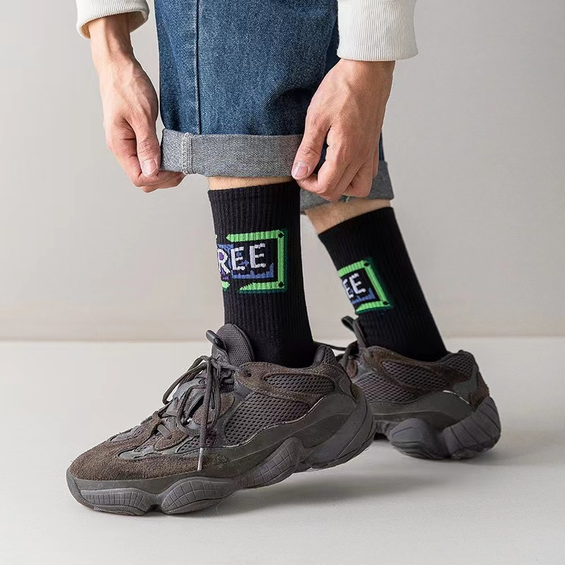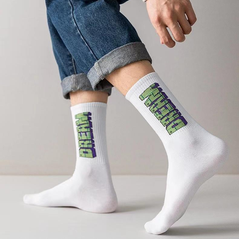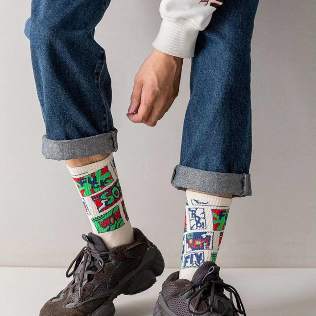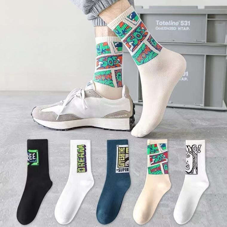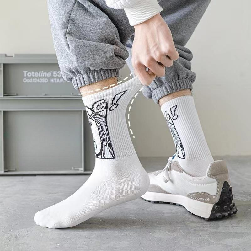 ถุงเท้าอินเทรนด์สำหรับผู้ชายและผู้หญิงถุงเท้ายาวหลอดกลางฝรั่งเศสTrendy men's and women's socks illustration style stocki