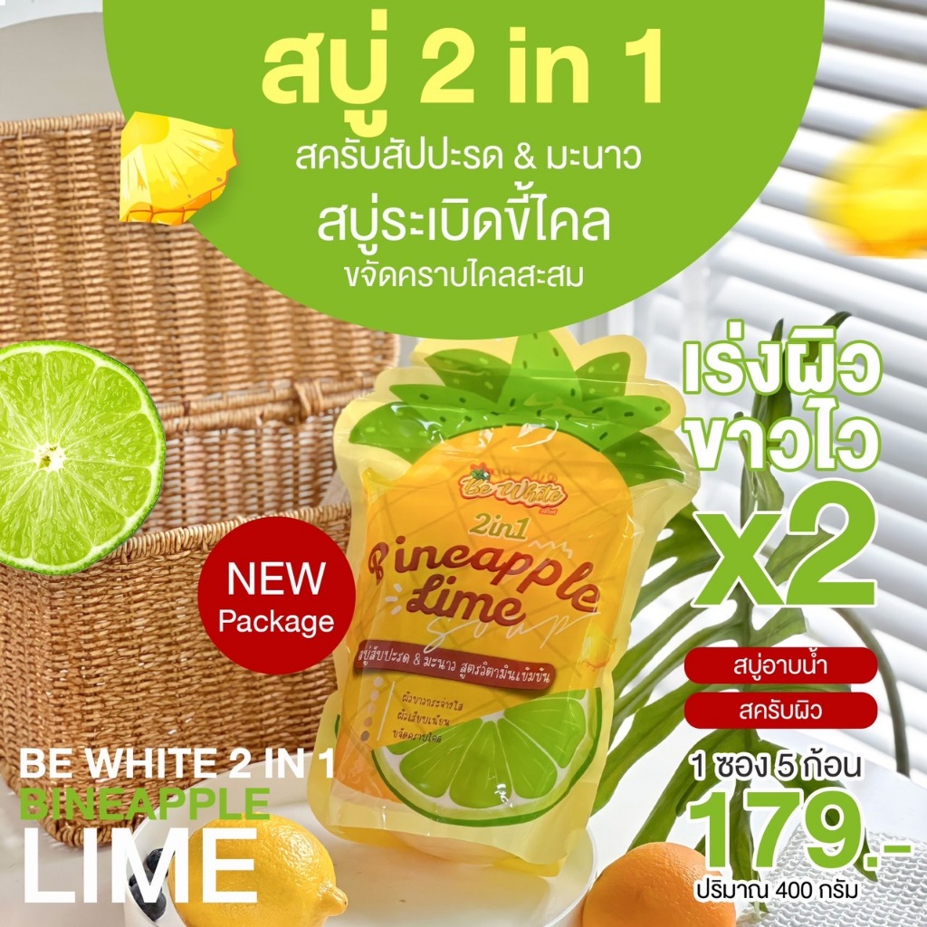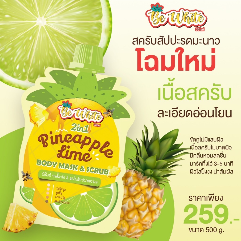 (โฉมใหม่) Be white บีไวท์ สบู่สครับ สับปะรด มะนาว ขัดขี้ไคล