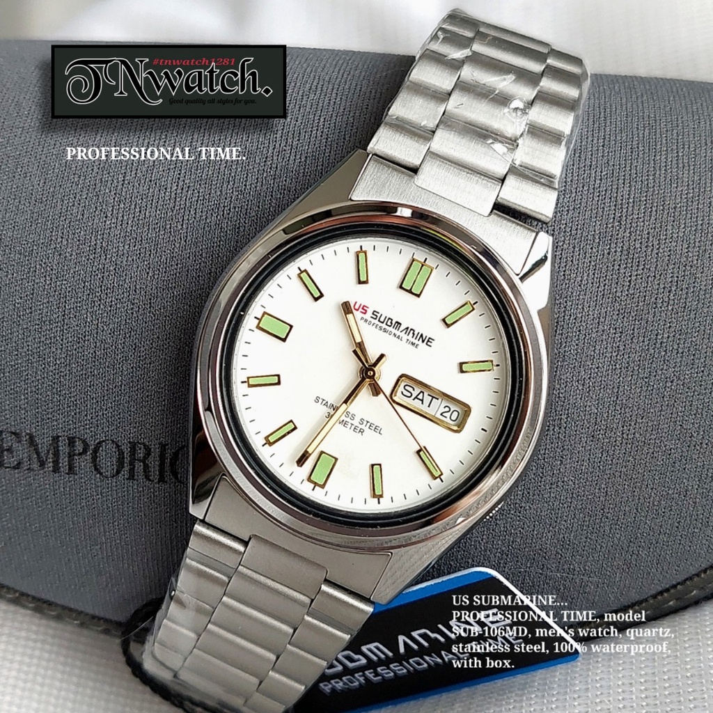 US SUBMARINE professional time รุ่น SUB-106MDD นาฬิกาผู้ชาย สแตนเลสติล ระบบควอทซ์ บอกวันที่ กันน้ำ100% พร้อมกล่อง
