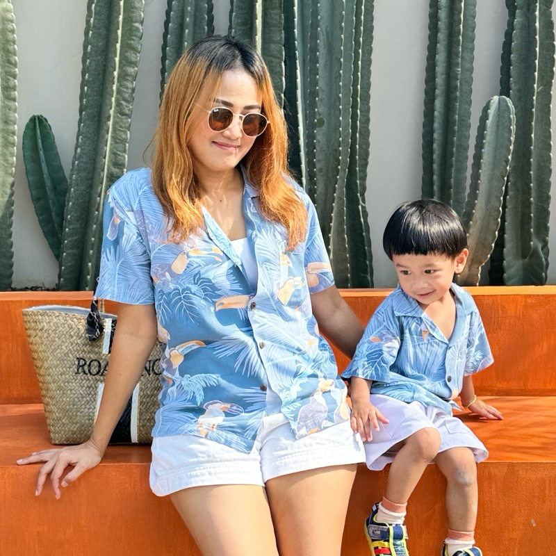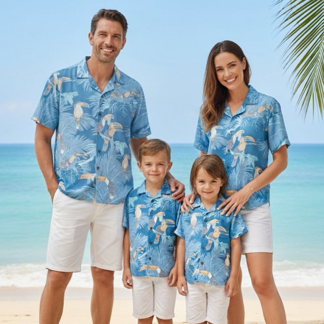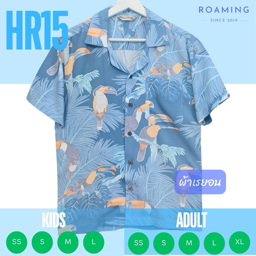 ROAMING HR15 เสื้อฮาวาย ผ้าเรยอนญี่ปุ่น เสื้อครอบครัว Rayon Hawaiian Shirts (นกเงือกฟ้า)