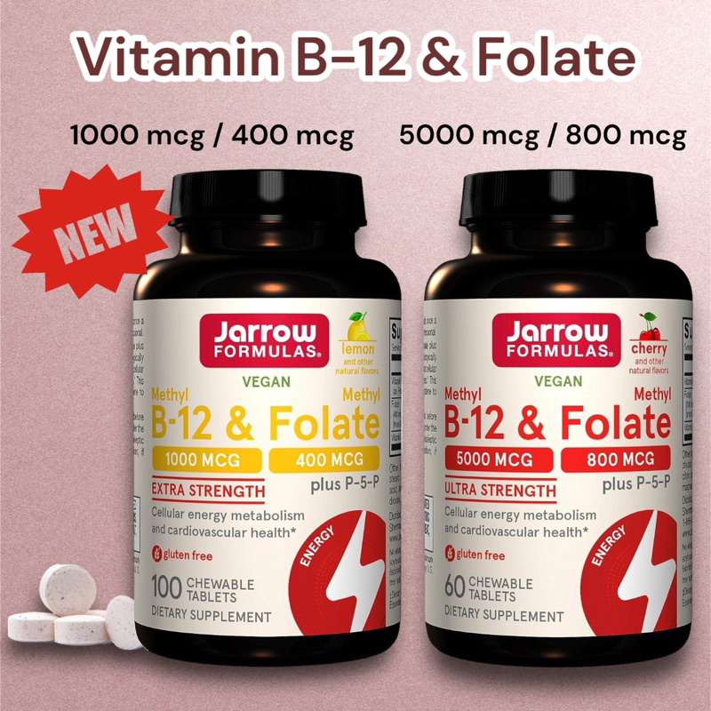 ✅พร้อมส่ง วิตามินบี12 + โฟเลต🔻Jarrow Formulas, Vitamin B12 + Folate, Methyl B-12 & Methyl Folate,