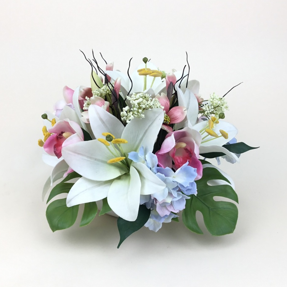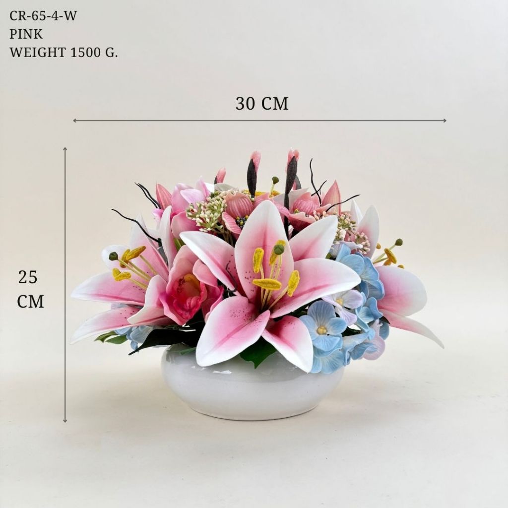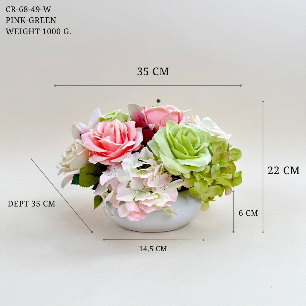 แจกันดอกไม้ประดิษฐ์รวม จัดทรงกลมพุ่มเตี้ย ดอกไม้ปลอมพร้อมแจกัน ดอกไม้ปลอมตกแต่งบนโต๊ะ