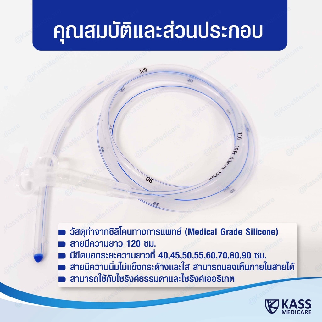 (5 ชิ้น) สายให้อาหารทางจมูก แบบซิลิโคน รุ่นปลายปิด no.14,16 NG Silicone Disposable Stomach Tube