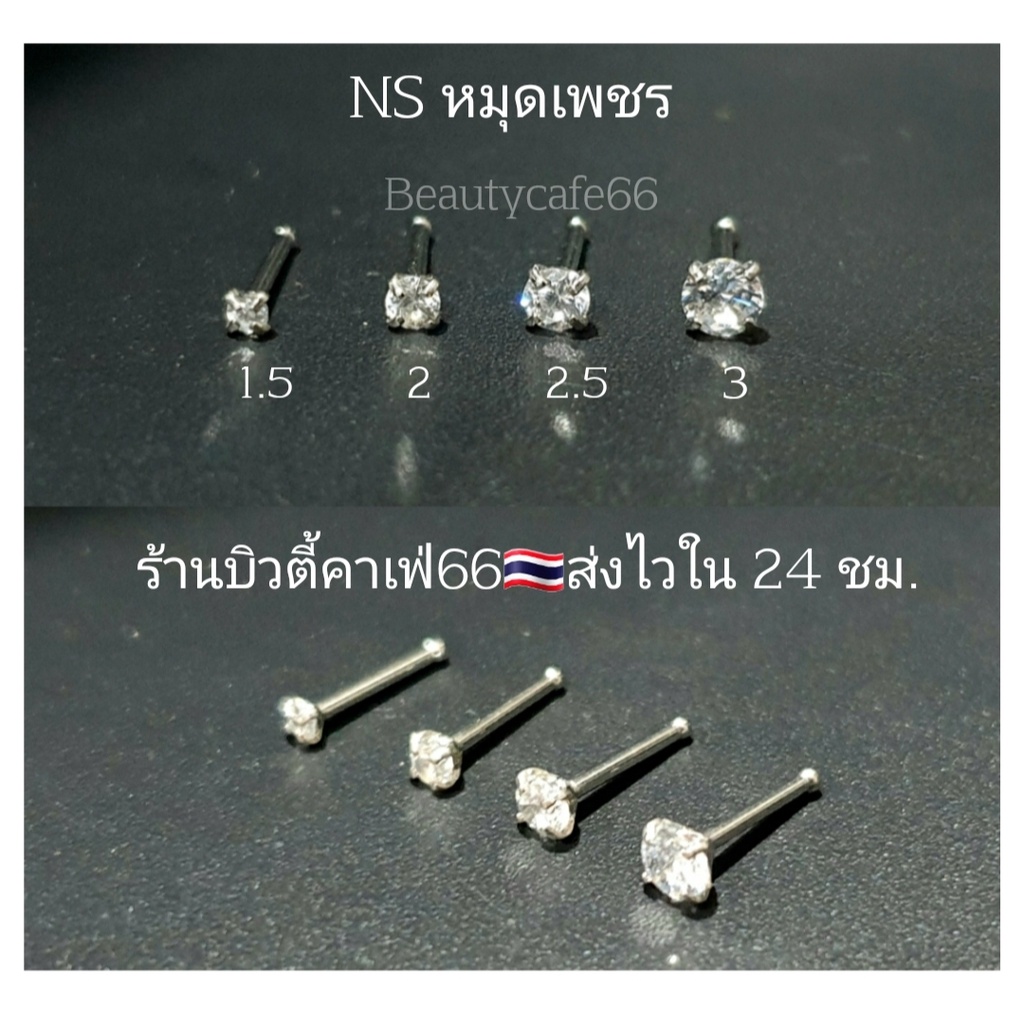 NS จิวจมูก จิวเพชร หมุดเงิน Stainless 316L (1pc.) Nose Stud หมุดพิงค์