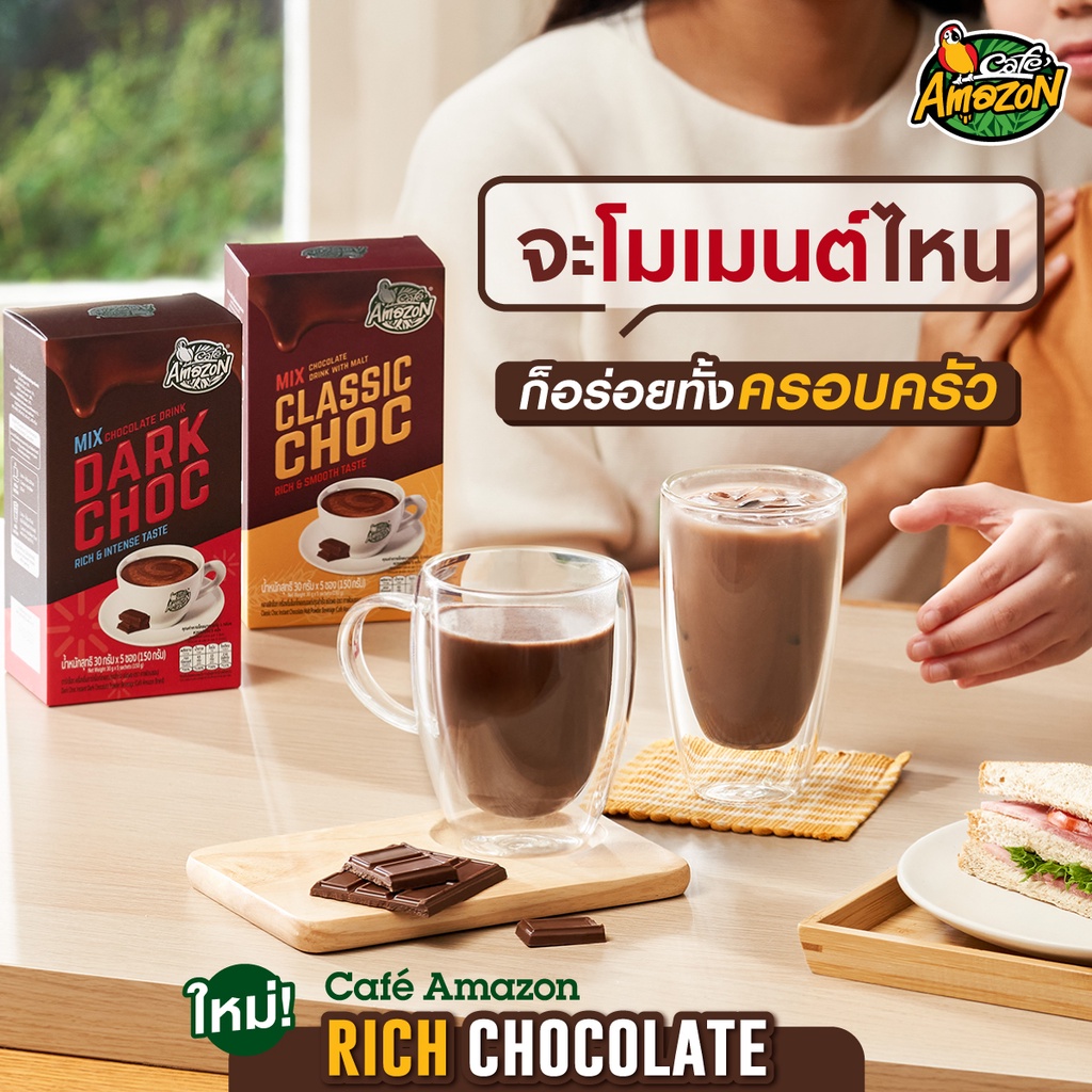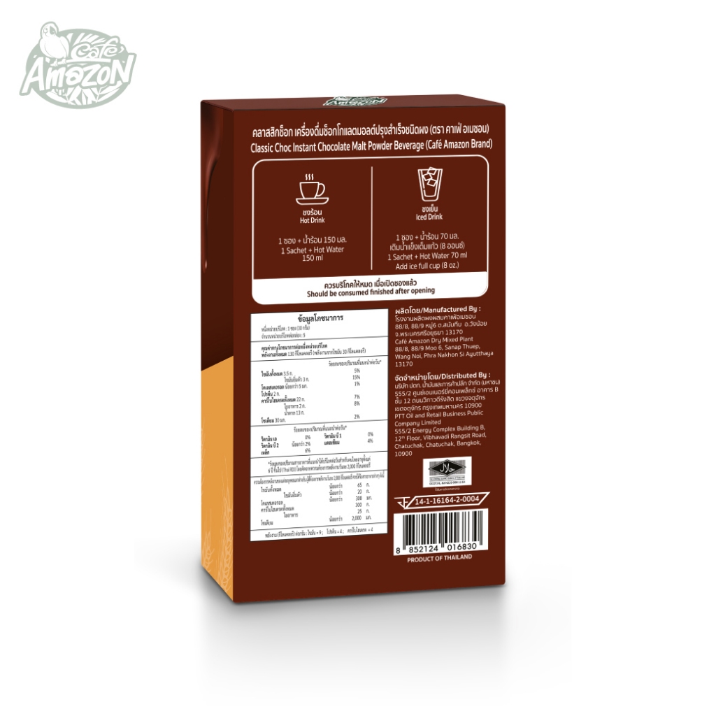 เครื่องดื่มช็อกโกแลตมอลต์ปรุงสำเร็จชนิดผง ตราคาเฟ่ อเมซอน รสคลาสสิคช็อก 150 กรัม