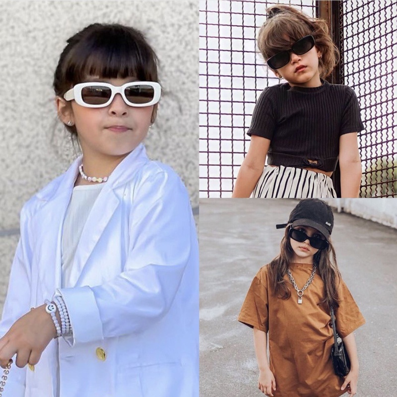 แว่นตากันแดดแฟชั่น ทรงวงรี สีพื้น สไตล์เกาหลีเรโทร สําหรับเด็ก UV400