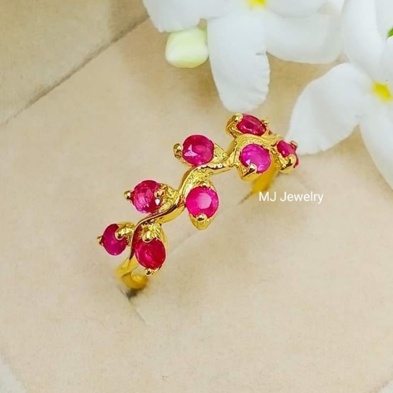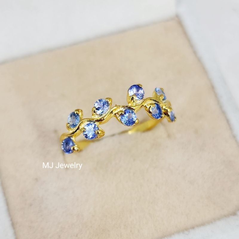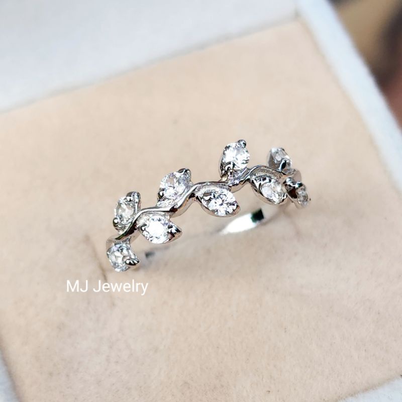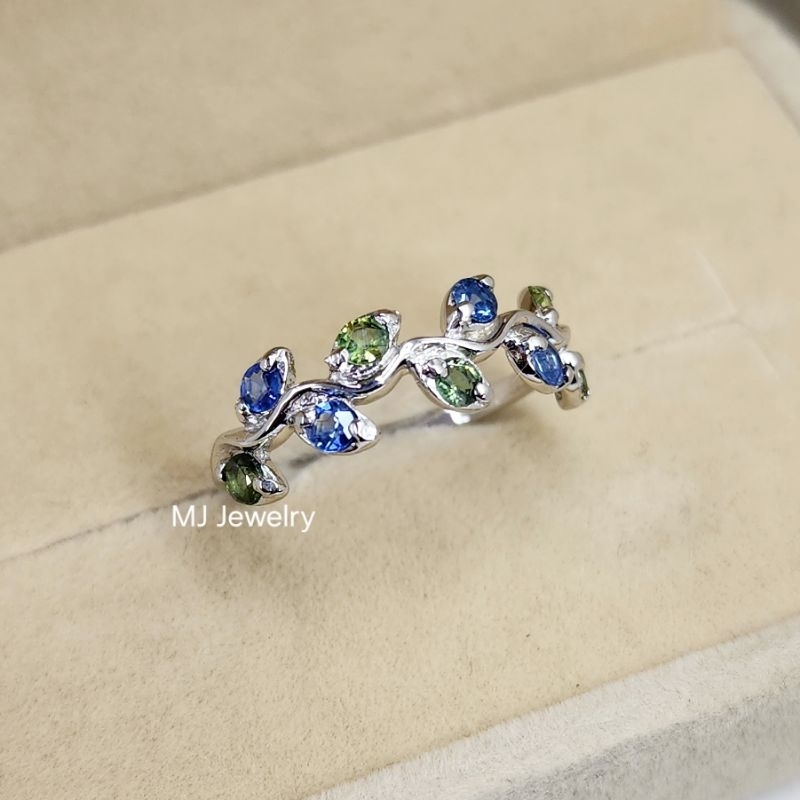 แหวนพลอยแท้ ดีไซน์แหวนใบมะกอก ตัวเรือนเงินแท้ 925 จิวเวลรี่พลอยแท้จันทบุรี