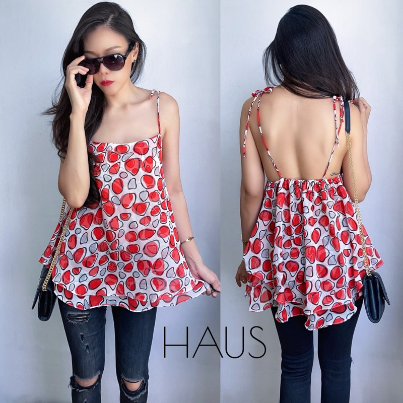 เสื้อสายเดี่ยวชีฟองทรง2ชั้นสายผูกปรับความยาวได้เอง ออกแบบสายได้เอง —ด้านหลังใส่ยางยืด ก่อนยืด30 ยืดถึง44”