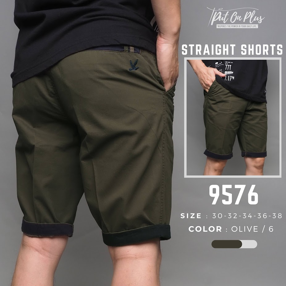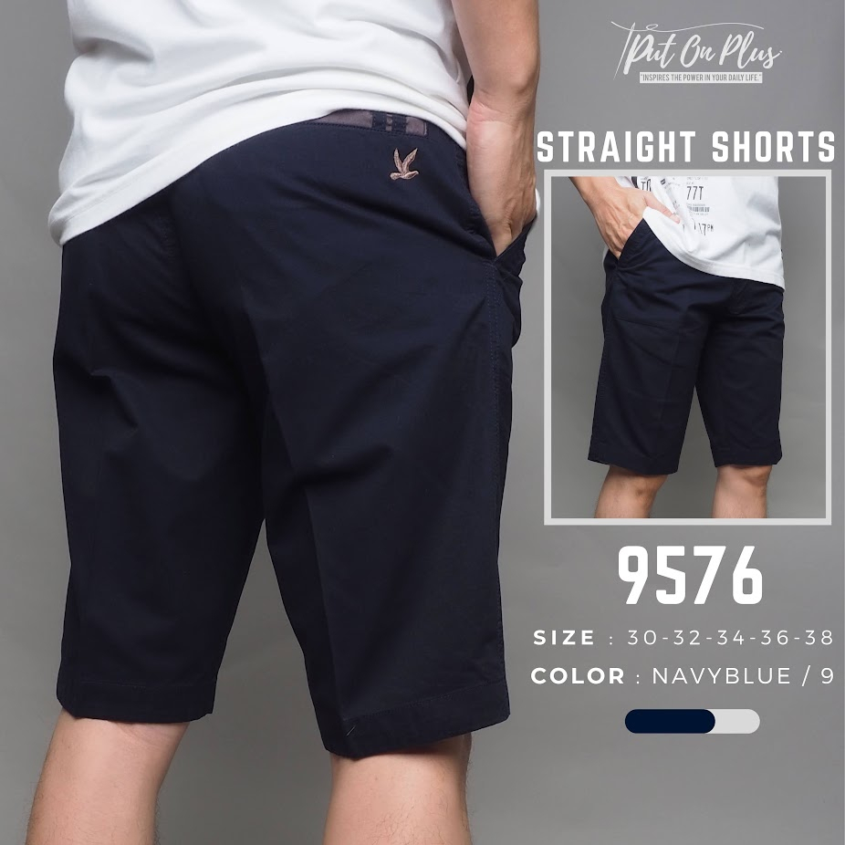 ⚡GW⚡9576กางเกงขาสั้น ผู้ชาย ผ้าคอตต้อน สีพื้น ทรงพับขา ยาว21-22นิ้ว ไซส์ 30-38