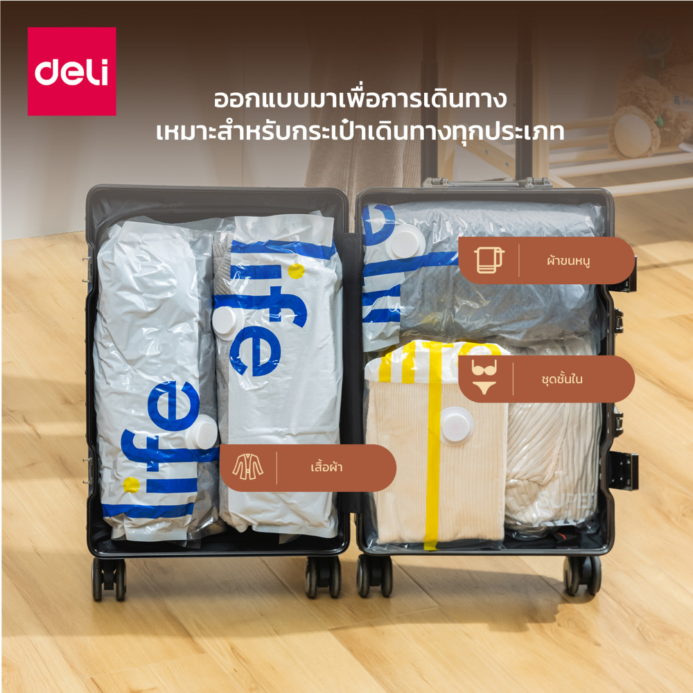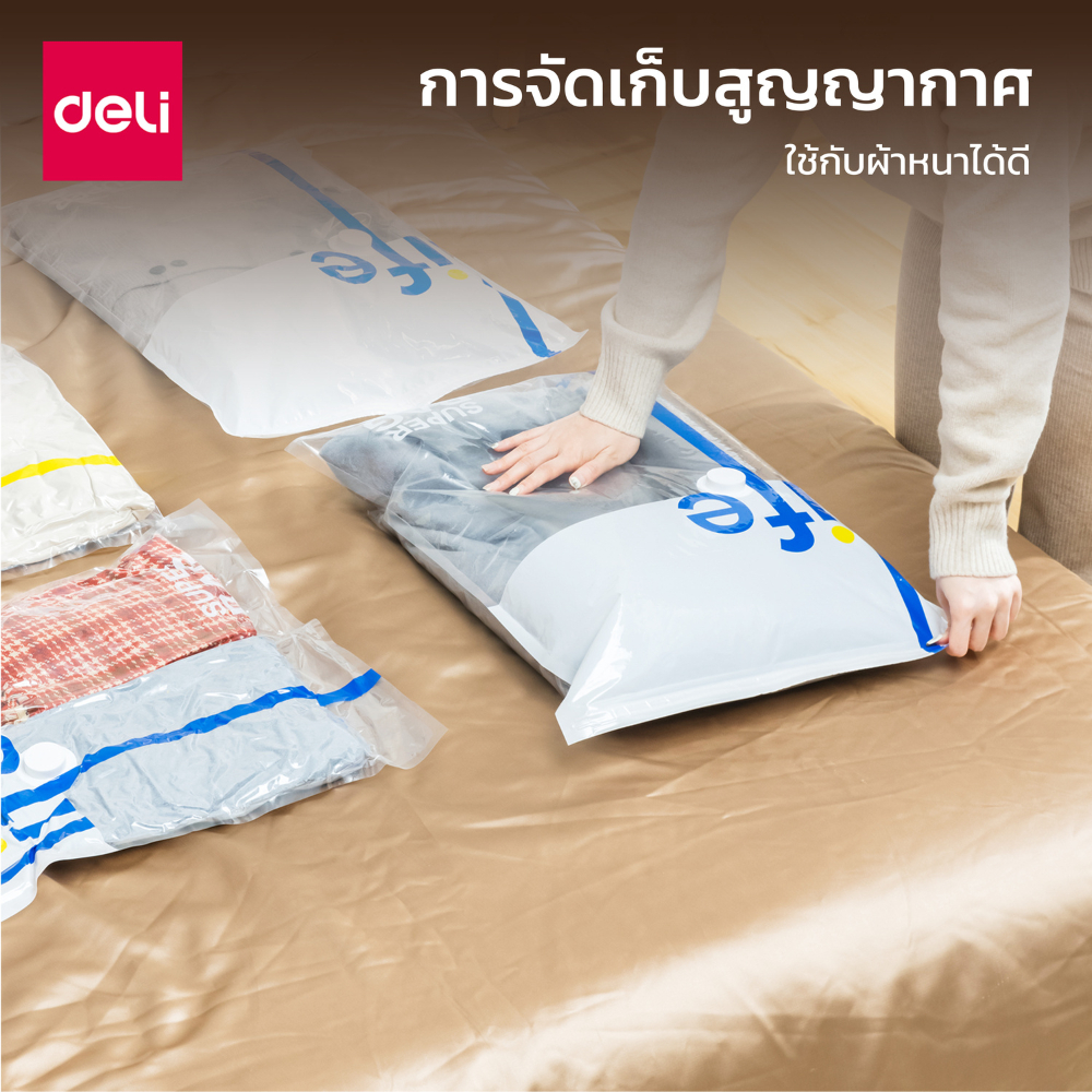 Deli ถุงสุญญากาศ ไม่ใช้ปั๊มลม จัดเก็บของ เก็บเสื้อผ้า เก็บผ้าห่ม ประหยัดพื้นที่ สามารถใช้งานซ้ำ Storage Vacuum Bag