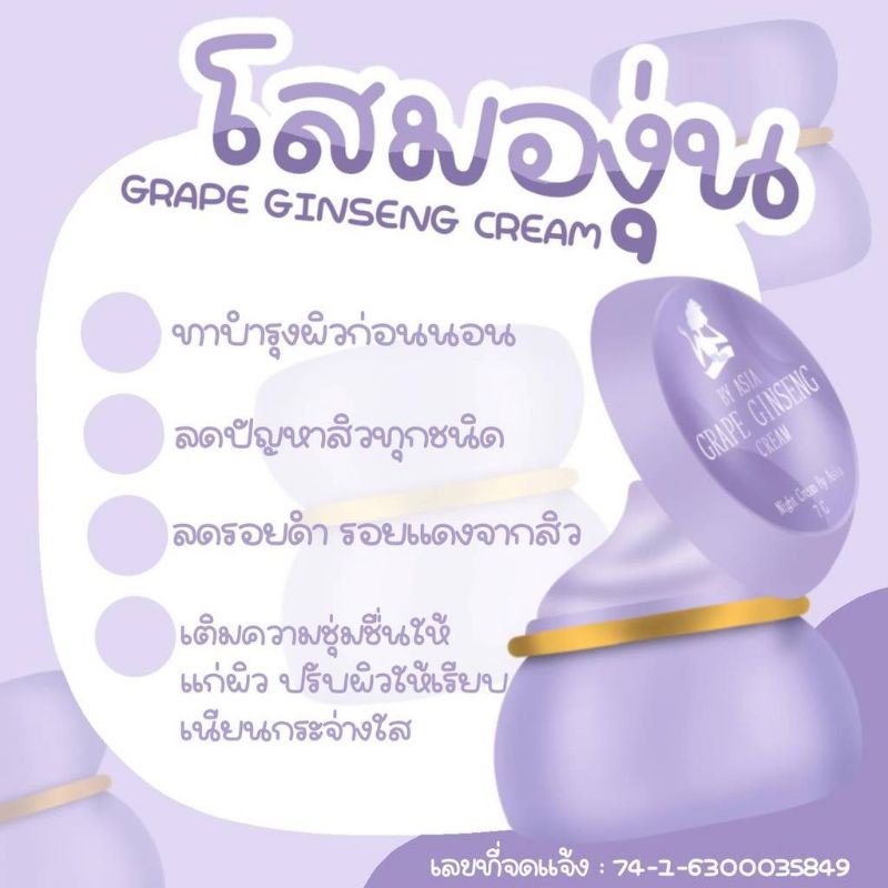ครีมโสมองุ่น by Asia ขนาด 7g