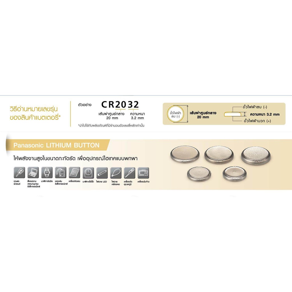 Panasonic Lithium Coin Battery ถ่านกระดุม รุ่น CR-2032PT/1B x5 Pack