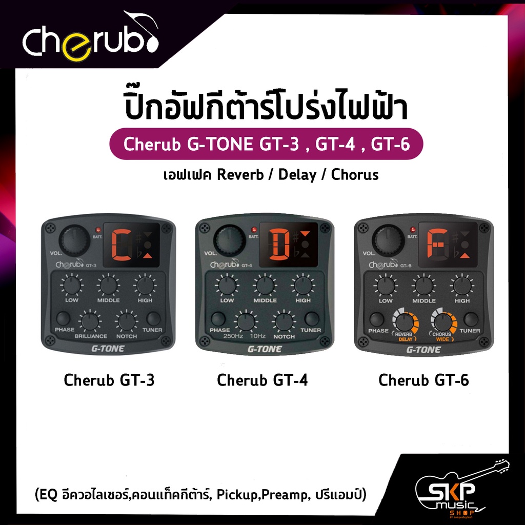 ปิ๊กอัฟกีต้าร์โปร่งไฟฟ้า Cherub G-TONE GT-3 , GT-4 , GT-6 เอฟเฟค Reverb,Delay,Chorus