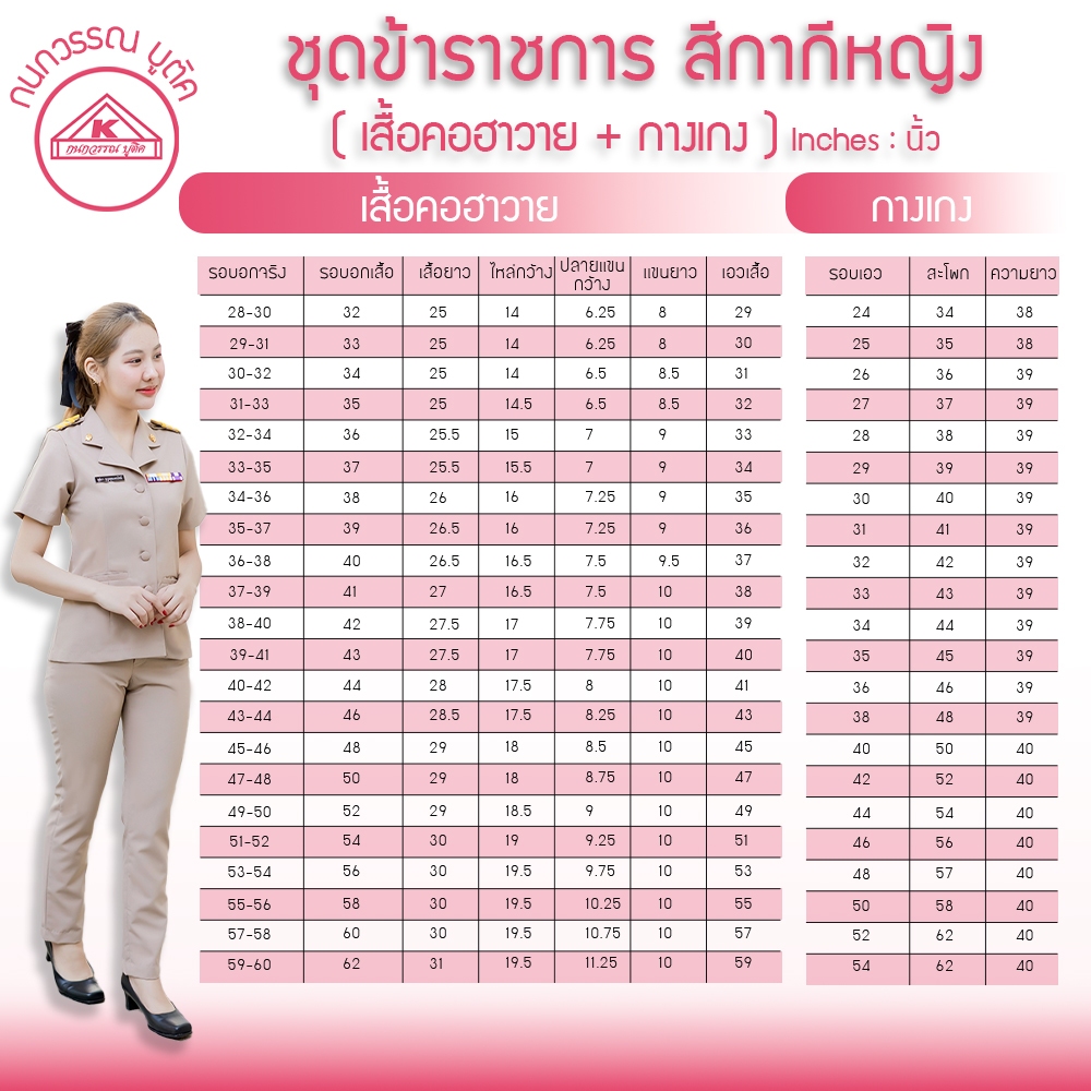 ชุดข้าราชการกากีหญิง คอฮาวาย+กางเกงยาว ผ้าฝ้าย(Cotton)