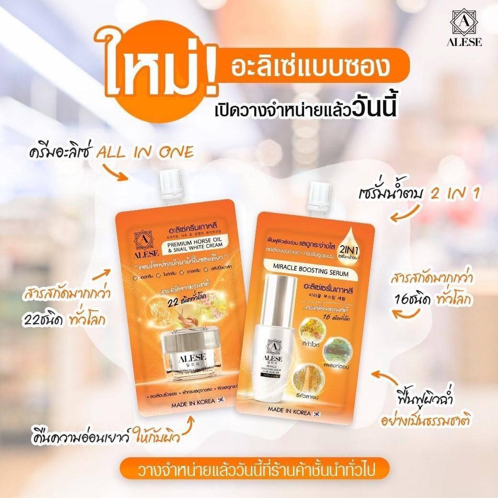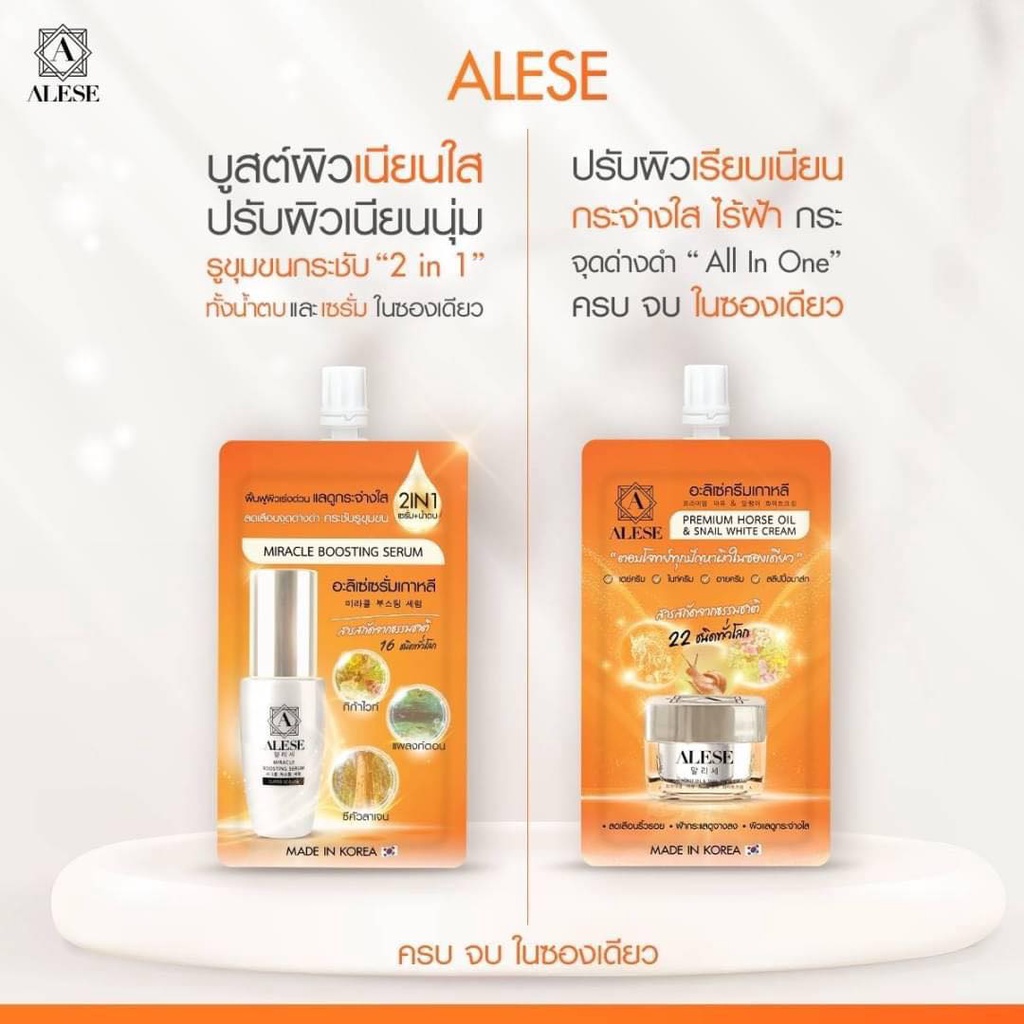 1แถม1 ALESE แบบซอง ครีม / เซรั่ม อะลิเซ่ ดูแลปัญหา ฝ้า กระ ริ้วรอย จุดดำ เพิ่มความชุ่มชื้น หน้าใส7ml