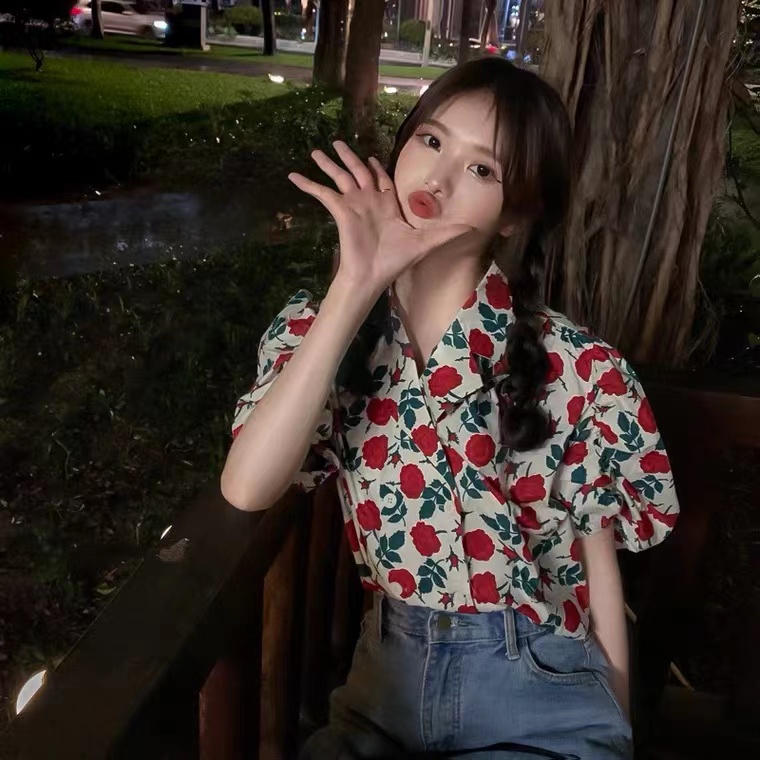 Suxi เสื้อเชิ้ตแขนสั้น แขนพัฟ ทรงหลวม เข้ารูป ลายดอกไม้ เข้ากับทุกการแต่งกาย สไตล์วินเทจ แฟชั่นฤดูร้อน สําหรับผู้หญิง