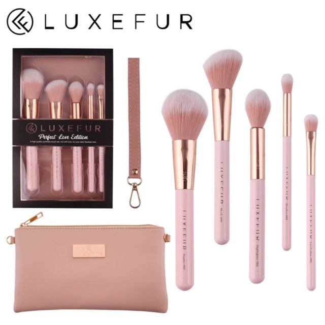 🌸 LUXEFUR Perfect Love Edition 5 Pieces Brush Set เซ็ตแปรง 5 ชิ้น + กระเป๋าใส่แปรง