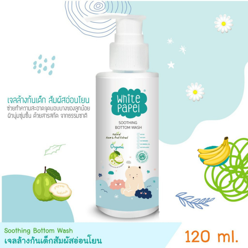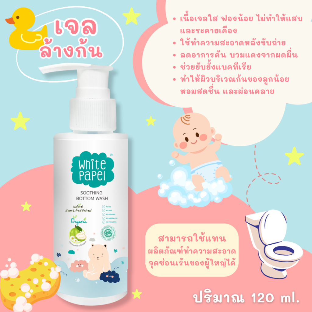 [ซื้อ 4ฟรี1] White Papel (ไวท์พาเพล) เจลล้างก้นเด็ก ทำความสะอาดก้นเด็ก ไม่ระคายเคือง หอมสดชื่น ออร์แกนิค 120ml.