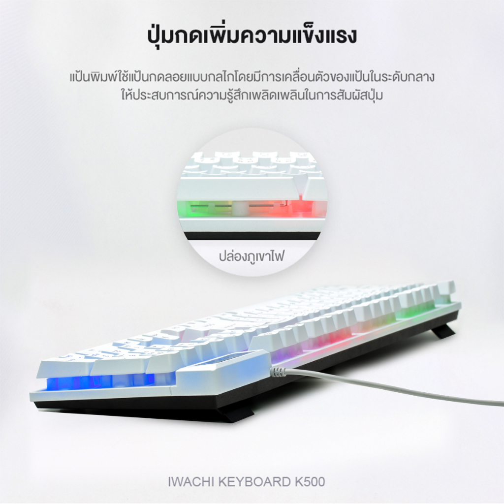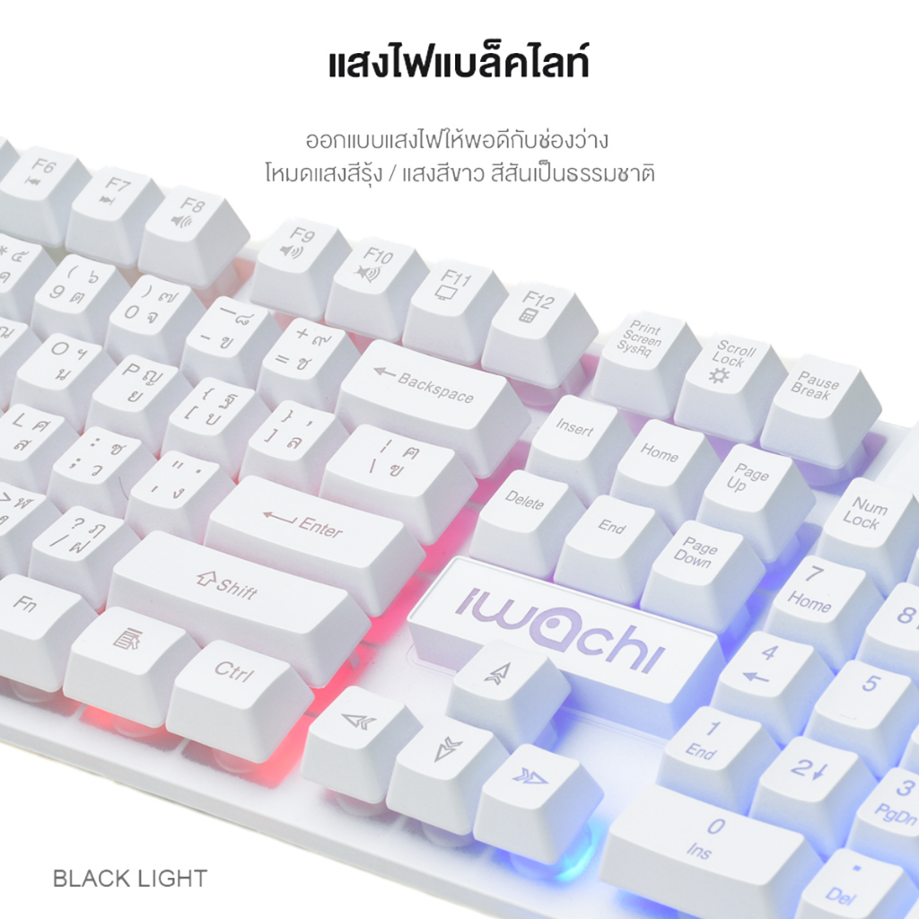 IWACHI K5 คีย์บอร์ดไฟ RGB แสงไฟสี/แสงไฟขาว คีย์บอร์ดเกมมิ่งมีสาย แป้นพิมพ์ภาษาไทย เสียงเบา เซตคีย์บอร์ด+เมาส์