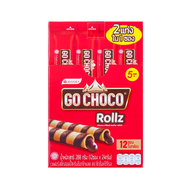 [แพ็ค 3] Go Choco Rollz Twin โก ช็อกโก้ โรล ทวิน ขนม เวเฟอร์ สอดไส้ช็อกโกแลต 24 ก. รวม 12 ชิ้น