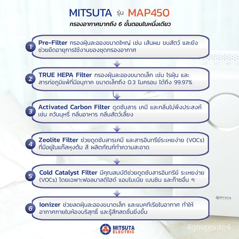 MITSUTA MAP450 แผ่นฟิลเตอร์กรองอากาศ สำหรับเครื่องฟอกอากาศ